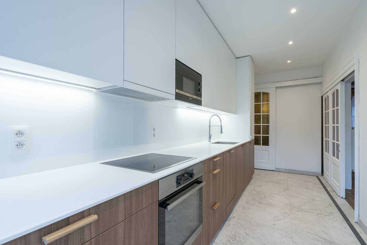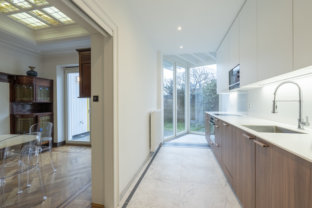 The Library house exudes a class that transcends trends. Imagine yourself in an English “country house” with the beautiful molure and cherry wood library room, a spacious living room with a library space. A separate dining room and renovated kitchen. On the higher floors you will find two bathrooms.