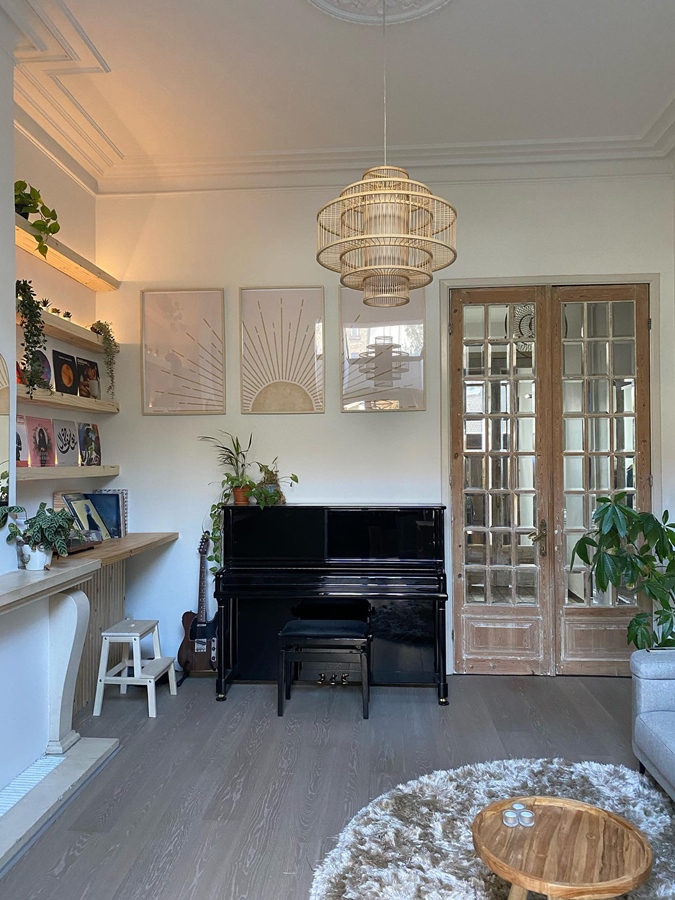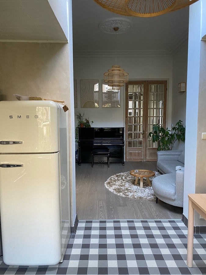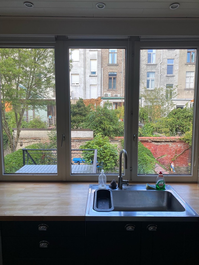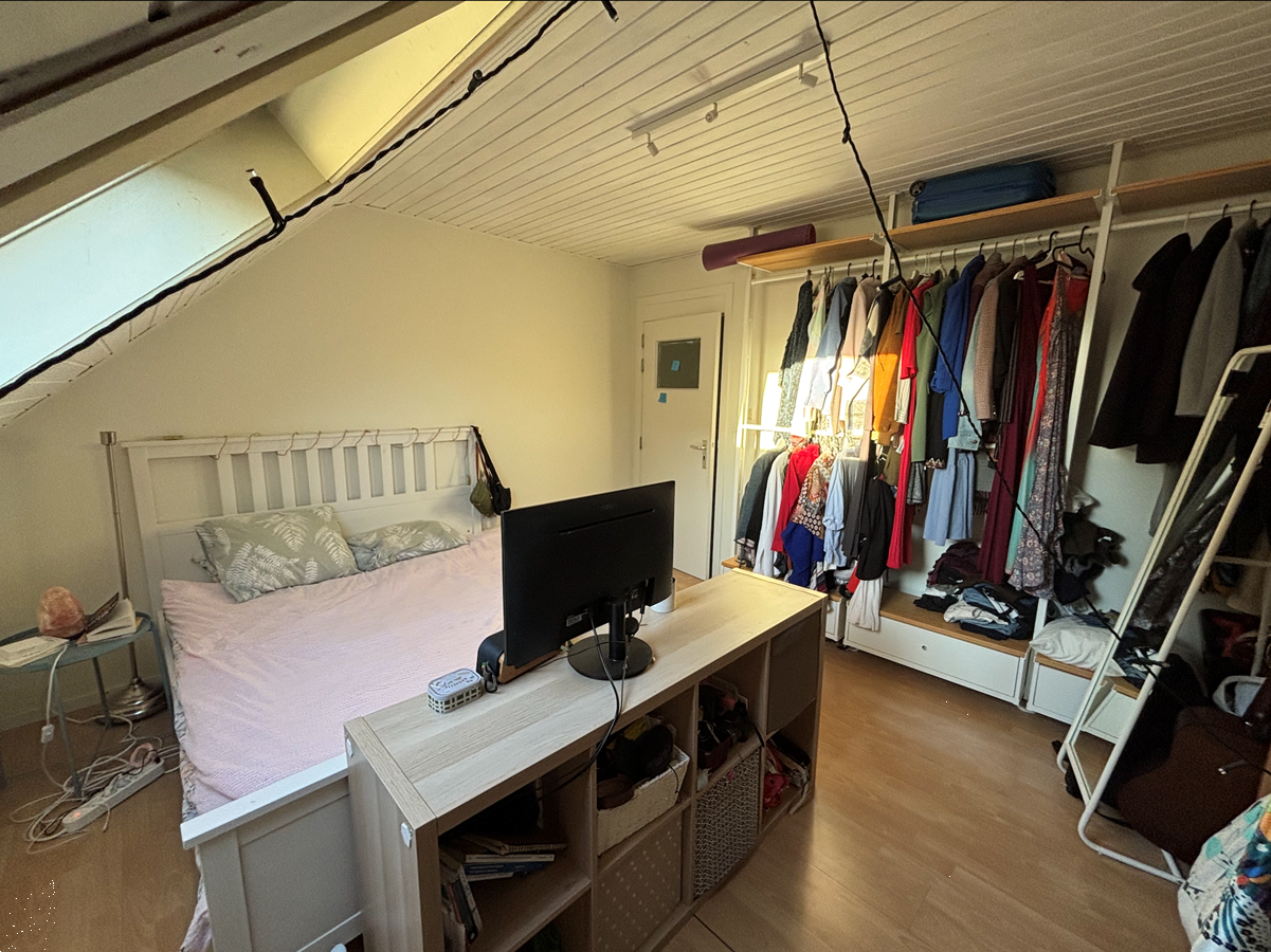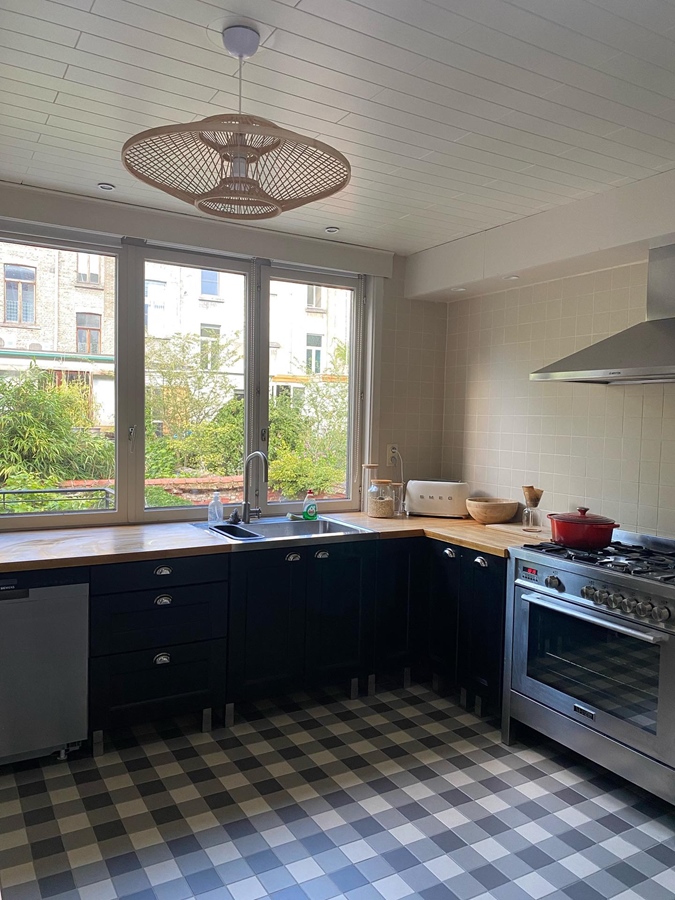Our house is located on the charming Zalmstraat, featuring a small city garden. We cook on gas in the kitchen; there's also a large oven, dishwasher, refrigerator, and small freezer. There's also one bathroom with a walk-in shower and two toilets, a basement living area (soon to be converted into an additional bathroom and guest room), solar panels, a water softener, and an attic for further storage. The basement living area also has a washing machine.