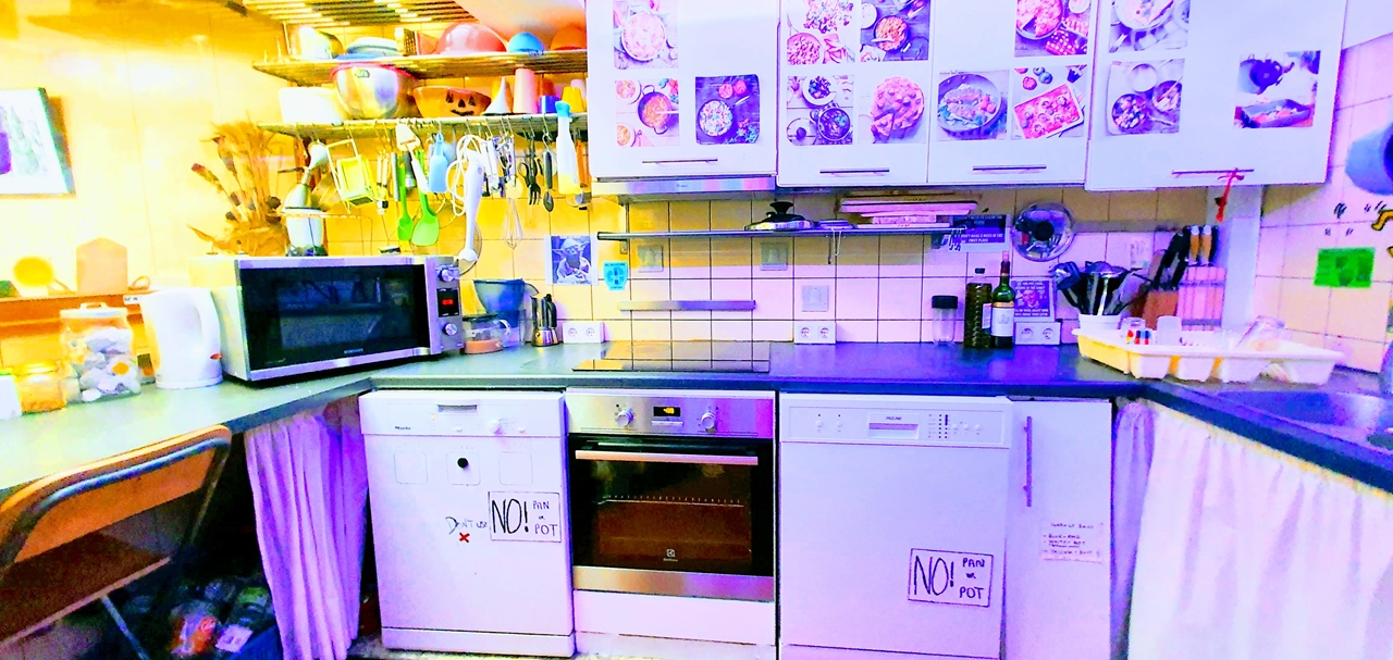 - Fully equipped kitchen + private cupboard/storage space (kitchen/bathroom)