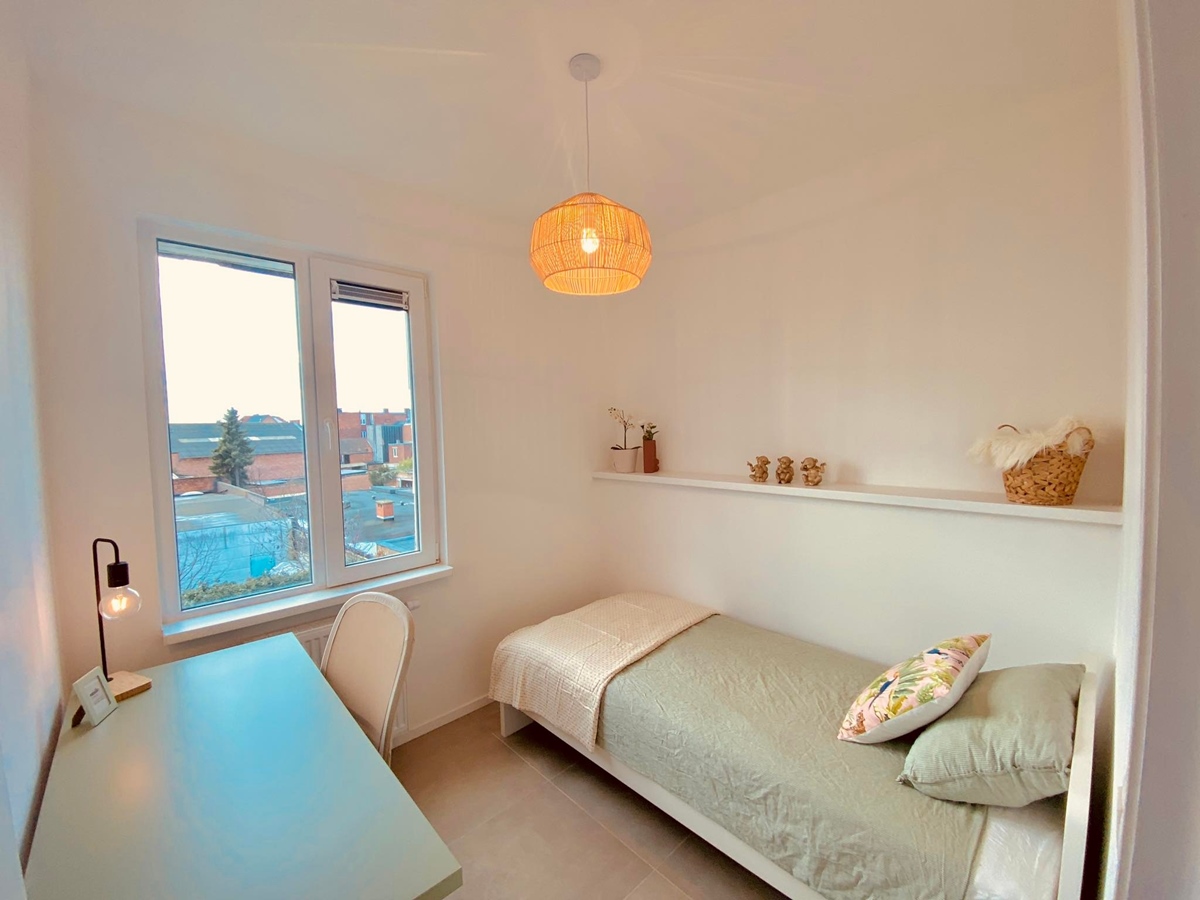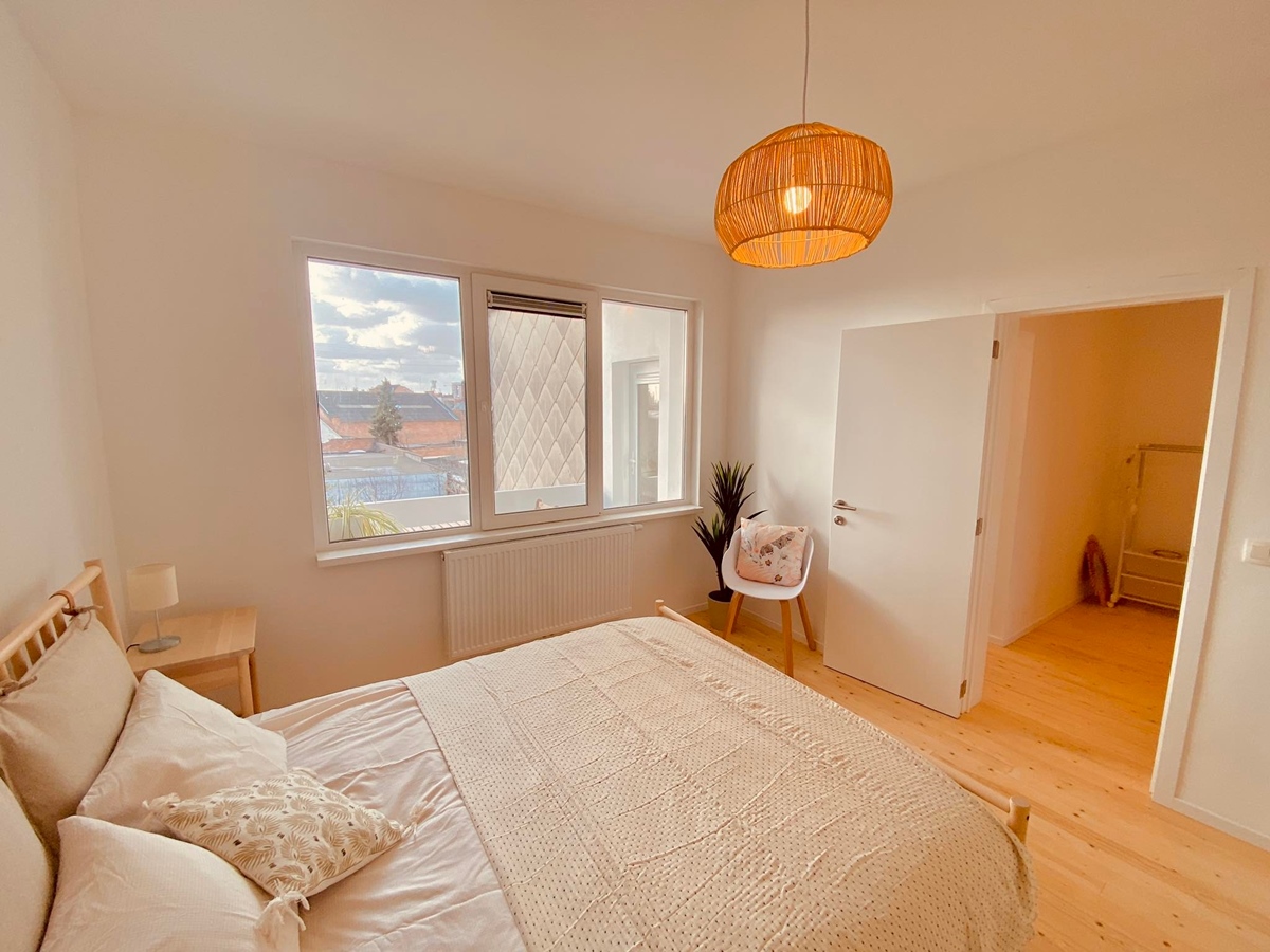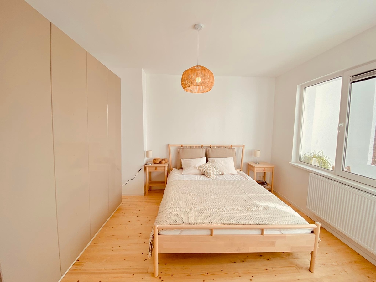 There are two bedrooms: - one with a double bed (160x200 cm) including a mattress, spacious wardrobe, etc. - one with a single bed (90x200 cm), a clothes rack, and a desk. The single bedroom will be available from November 2025.