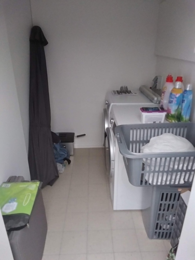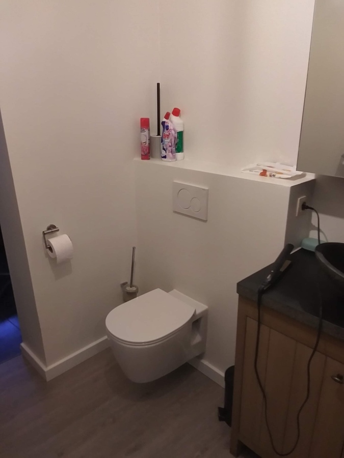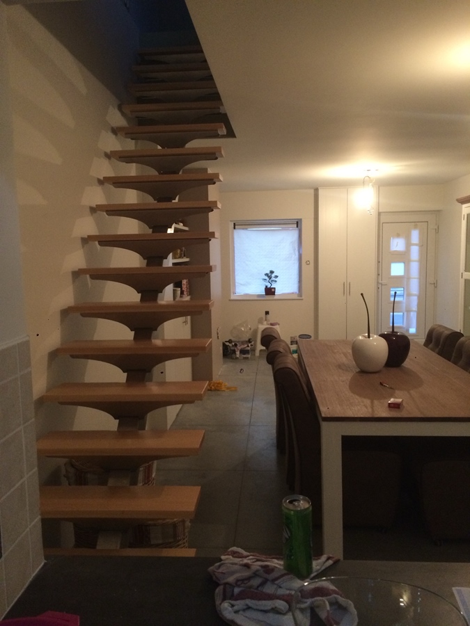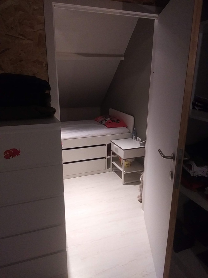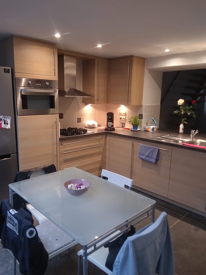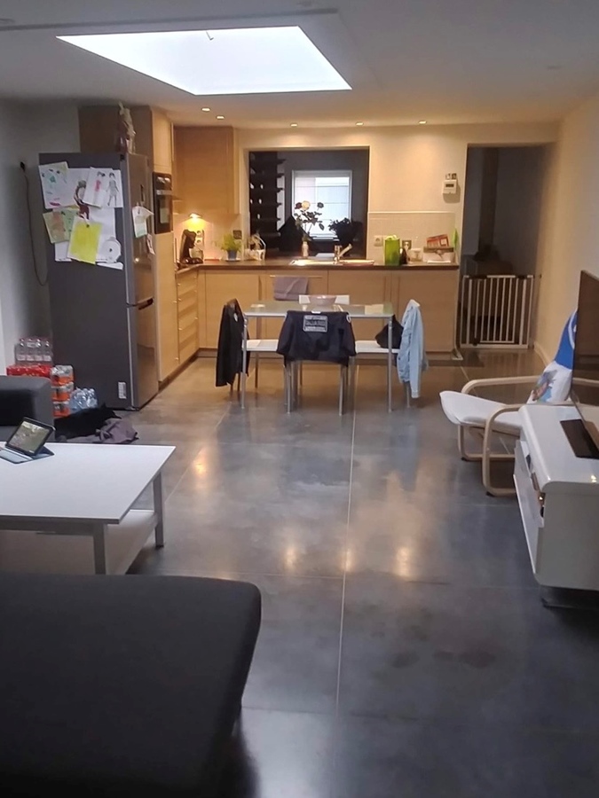 Open-plan living room/kitchen (60m²) Separate bathroom. Upstairs, divided into two bedrooms.