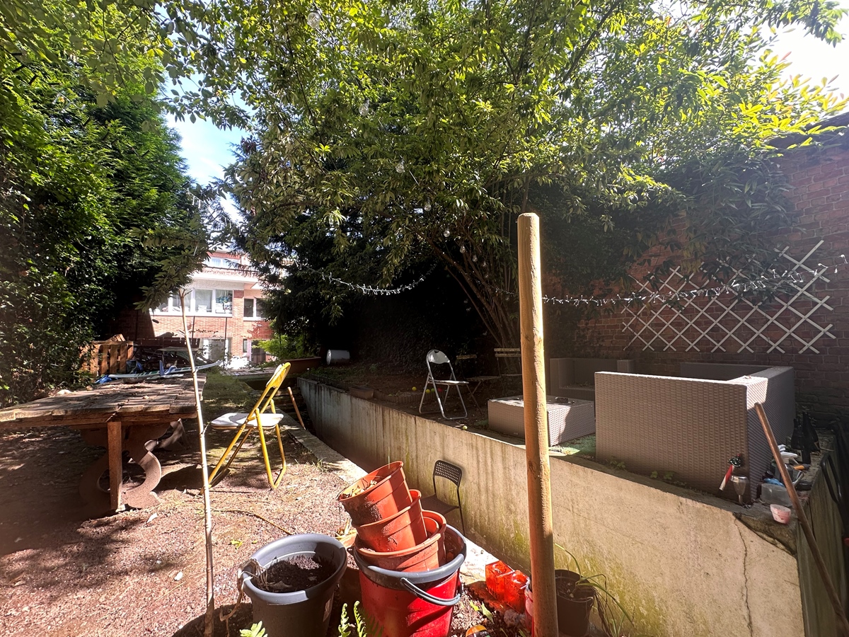 There is a large living room with separate TV room, separate kitchen, 2 bathrooms, 3 toilets and a unique garden. We also have a shy cat walking around.