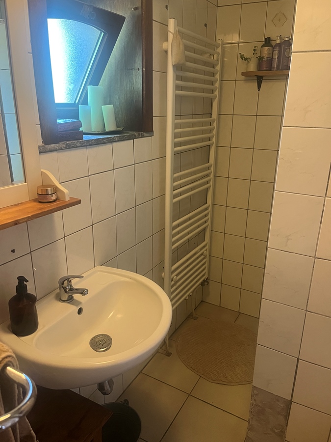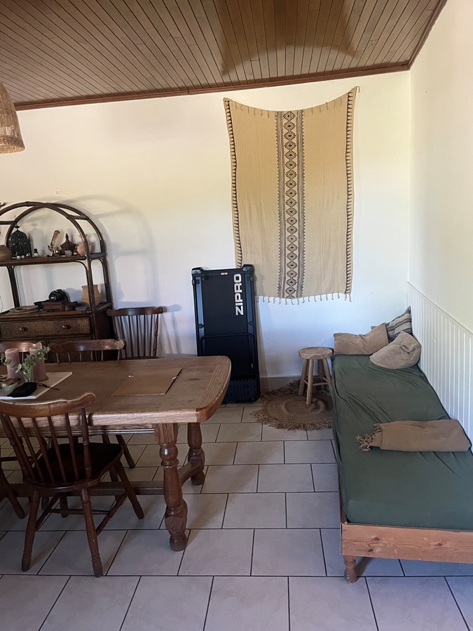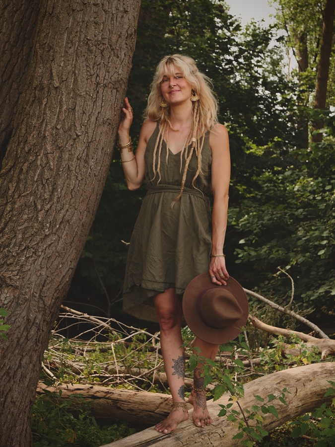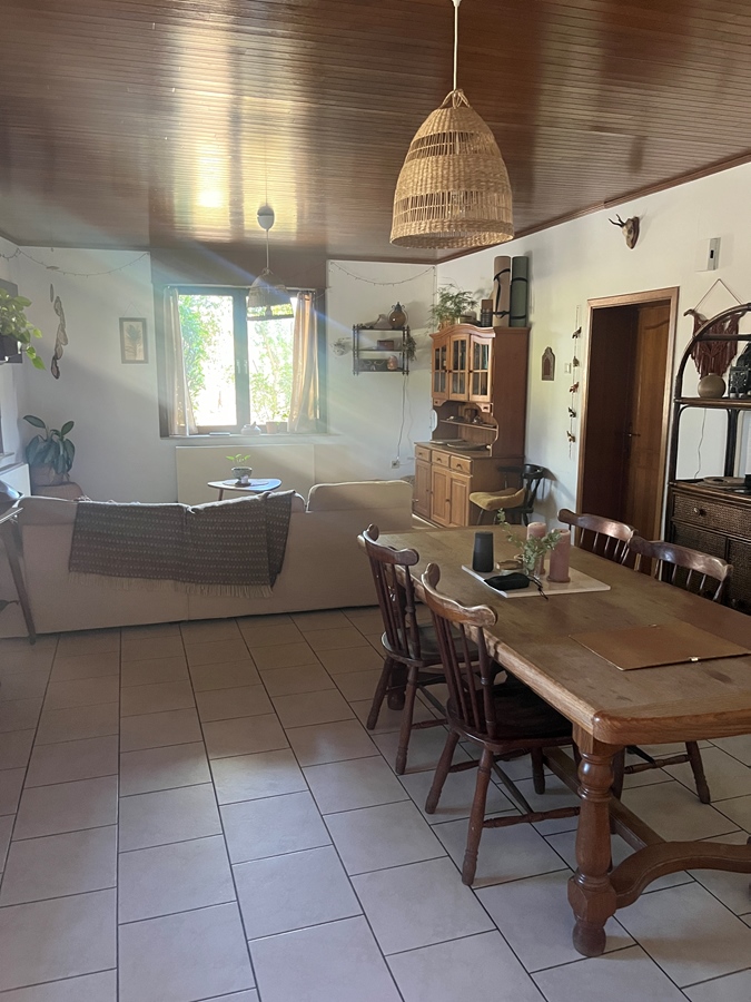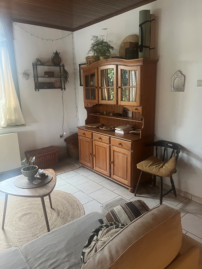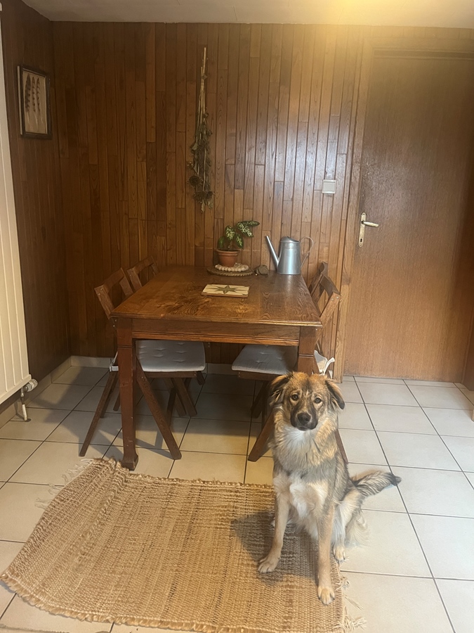 I am Jolien and I currently live in the farmhouse with my dog Aiko. I am 37 years old, creative, and sporty. I love yoga, running, swimming, silversmithing, gardening, reading, meditating, the sauna, taking long walks in nature... I work as a jeweler and my workshop is in the farmhouse.