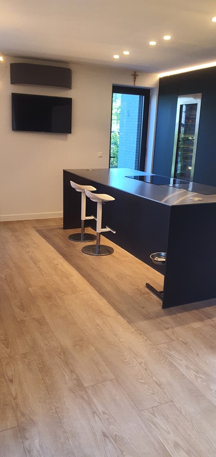 I work a lot in Antwerp. I leave at 6:30. I am home from 18:30. Beautiful designer kitchen, underfloor heating, and air conditioning.