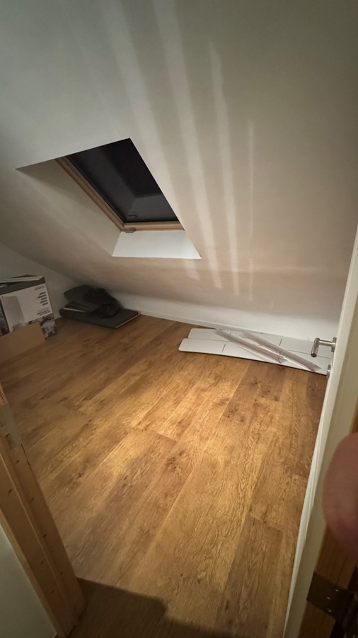 Due to unforeseen additional heavy costs, I would like to offer my finished attic space in 2 sections, which have sufficient power outlets and a direct 500mbps wall internet connection. Insulated roof with solar panels. 2 Velux windows. There is also a walk-in shower and toilet on the first floor.