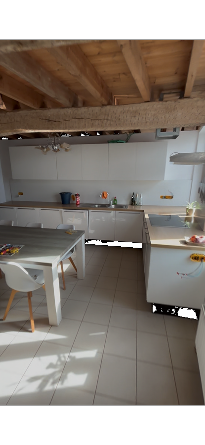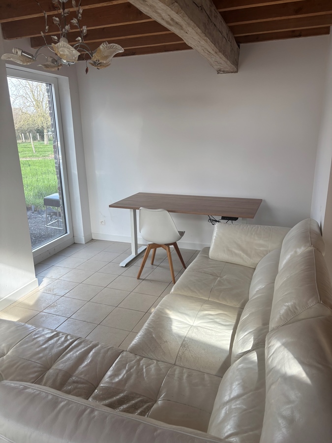 Room with a high ceiling and plenty of natural light thanks to the Velux windows. The wood structure allows you to create a cozy space. Air conditioning will be installed if necessary. (House has an EPC B rating)