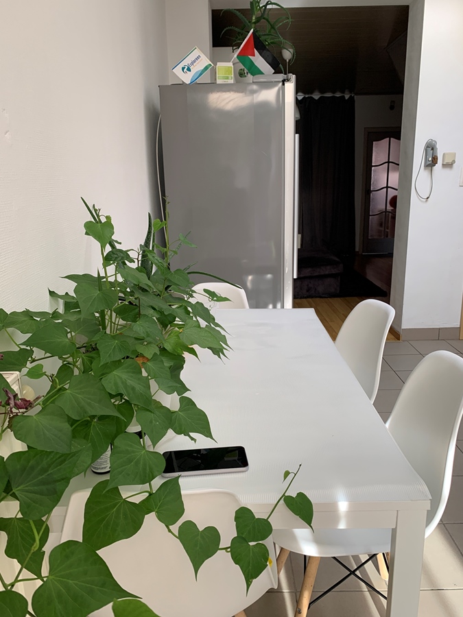Salam. Logement accepté. Une chambre privée est disponible à partir du 15 avril, dans une maison partagée. Loyer : 590 € + 190 € (charges comprises : électricité, eau, gaz, internet, etc.) par mois. Nous sommes propres, calmes, non-fumeurs, non-buveurs et les fêtes sont interdites dans la maison. Nous travaillons la journée et dormons la nuit, merci de ne pas faire de bruit après 20h. Nous recherchons une personne propre qui contribue à la propreté et à l'organisation de la maison. Un frère ou une sœur avec un mode de vie similaire serait le bienvenu(e), de préférence une sœur. Disponible initialement pour 6 mois, avec possibilité de prolongation selon nos disponibilités. Adresse : Anvers 2020, près du parc de Kiel et du tramway.