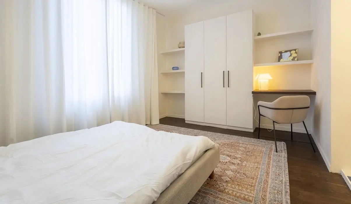 Belle chambre spacieuse avec salle de bain privative, placard intégré, bureau intégré et lit double. Inutile d'apporter grand-chose : elle est prête à vous accueillir.