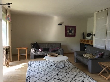 La maison principale, avec son jardin attenant, son allée et sa terrasse, est située dans un cadre verdoyant et paisible et peut être utilisée à titre privé. Une cuisine commune équipée d'un lave-linge et d'un congélateur est également à disposition. Nous logeons dans une ancienne écurie rénovée, attenante à la maison.