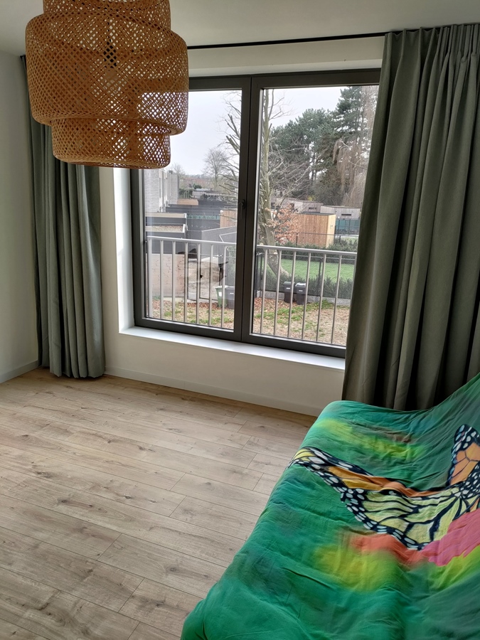 Je dispose d'une chambre libre dans une maison neuve (DPE A) à Boechout (Zuiderdal). La maison comprend un jardin, trois chambres, un grenier spacieux, une salle de bains, deux WC et un débarras. Vous y trouverez suffisamment d'espace pour profiter à la fois de la compagnie et de l'intimité. La surface habitable est d'environ 240 m². Le grenier (35 m²) peut également être aménagé en chambre.