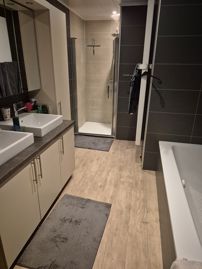 Votre chambre se trouve au premier étage. Vous y trouverez également une salle de bains avec toilettes et lavabo. Au rez-de-chaussée se trouvent la cuisine commune et une salle de bains avec douche à l'italienne et baignoire. Un petit jardin avec terrasse est également à votre disposition.