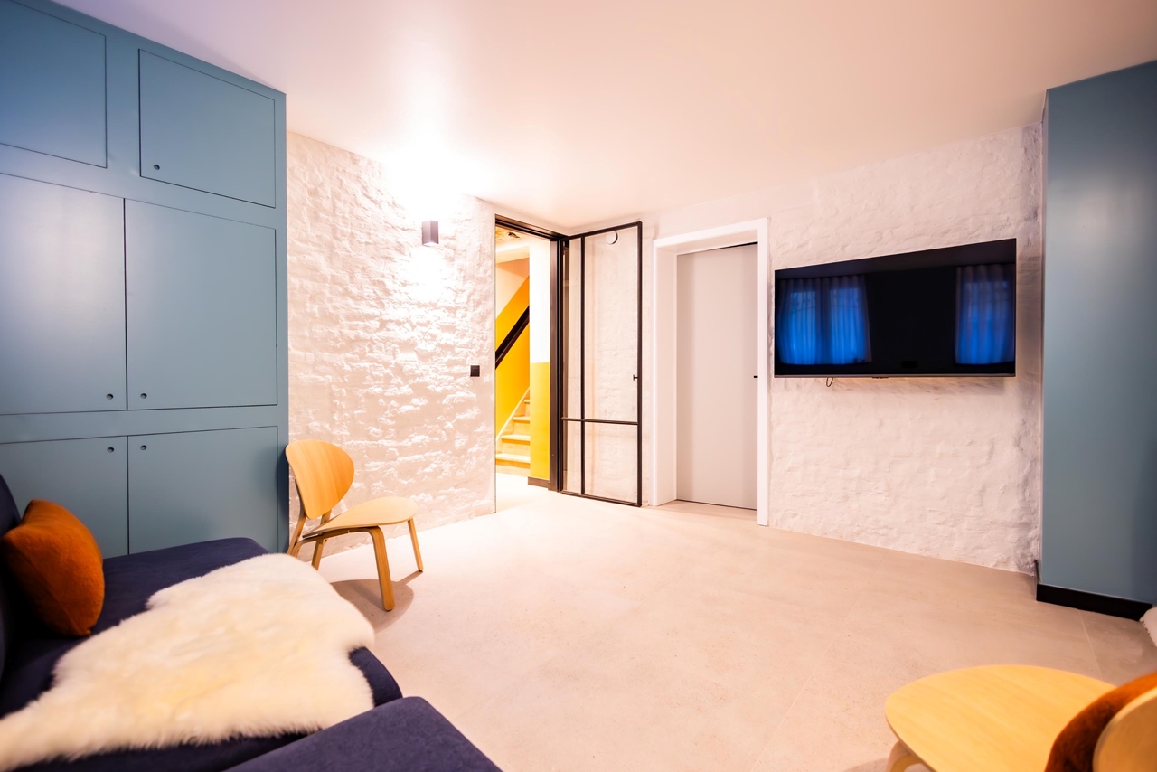 Maison récemment rénovée et meublée, comprenant six chambres et des espaces communs confortables avec salle de sport et salle de télévision.