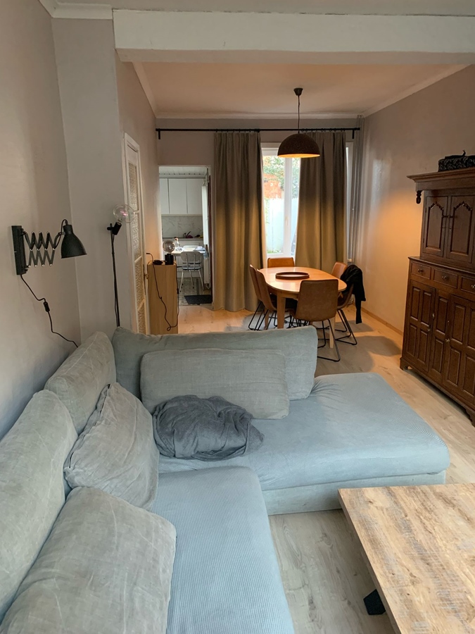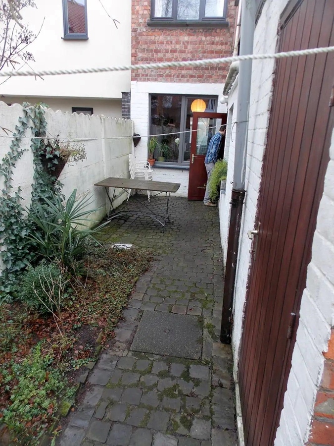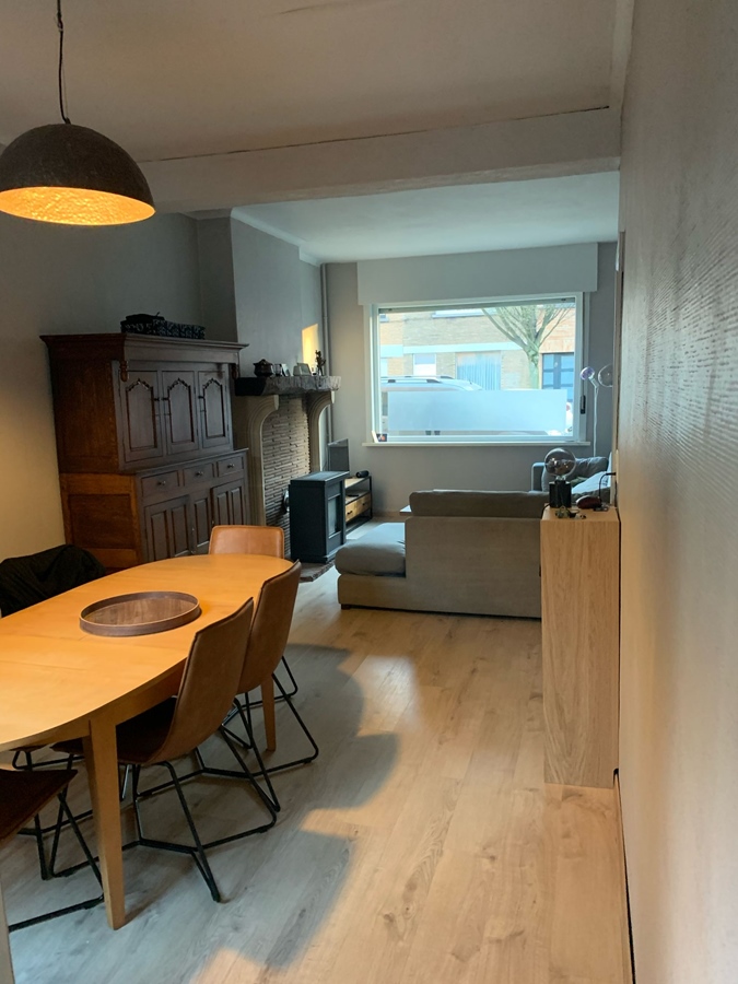 Confortable maison de ville de deux chambres à Gentbrugge. La maison est partiellement meublée, mais vous pouvez y apporter votre touche personnelle. Elle dispose d'un espace de vie ouvert avec un spacieux séjour et une cuisine, une salle de bain avec douche à effet pluie, un débarras et une cour.