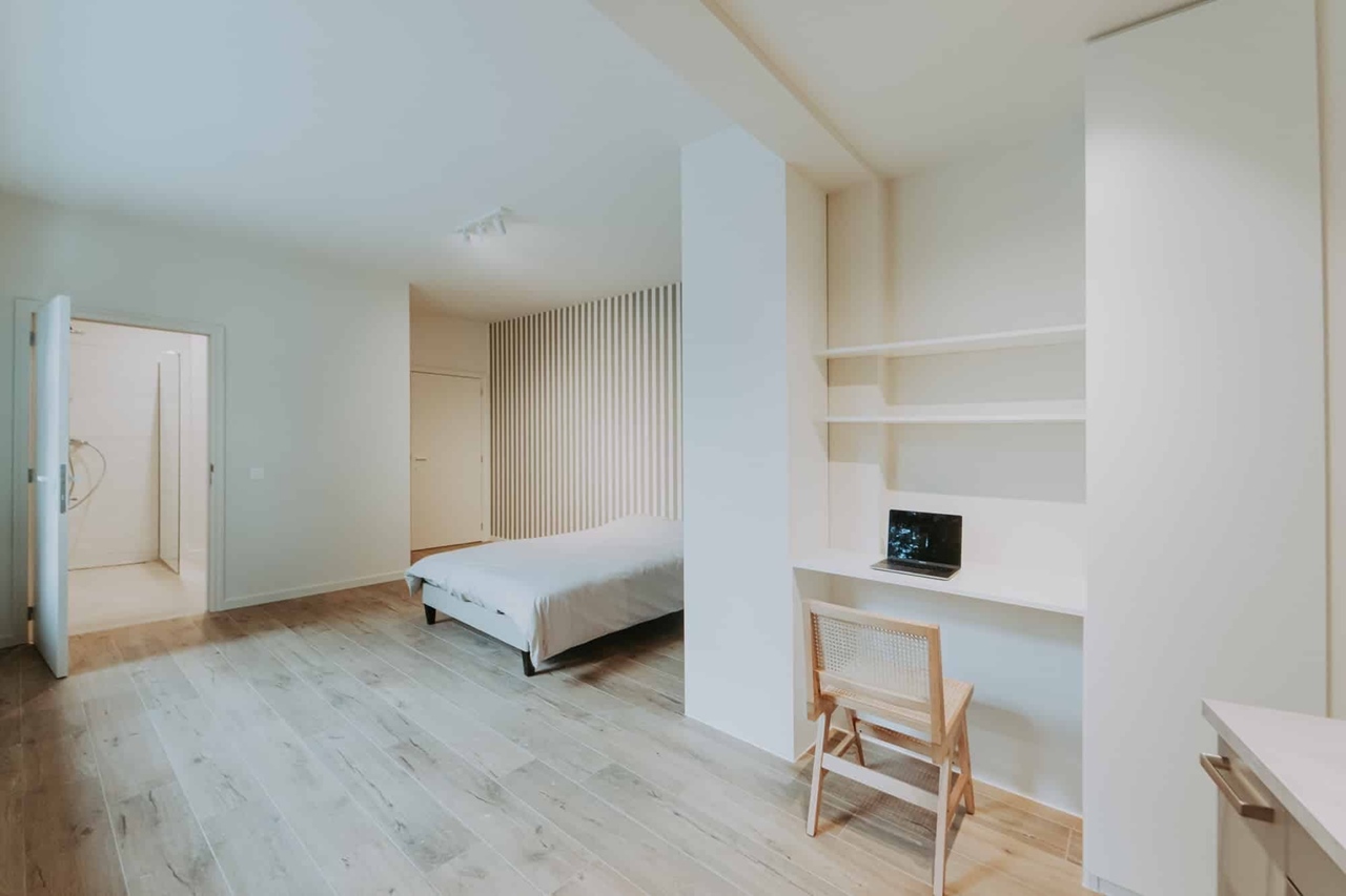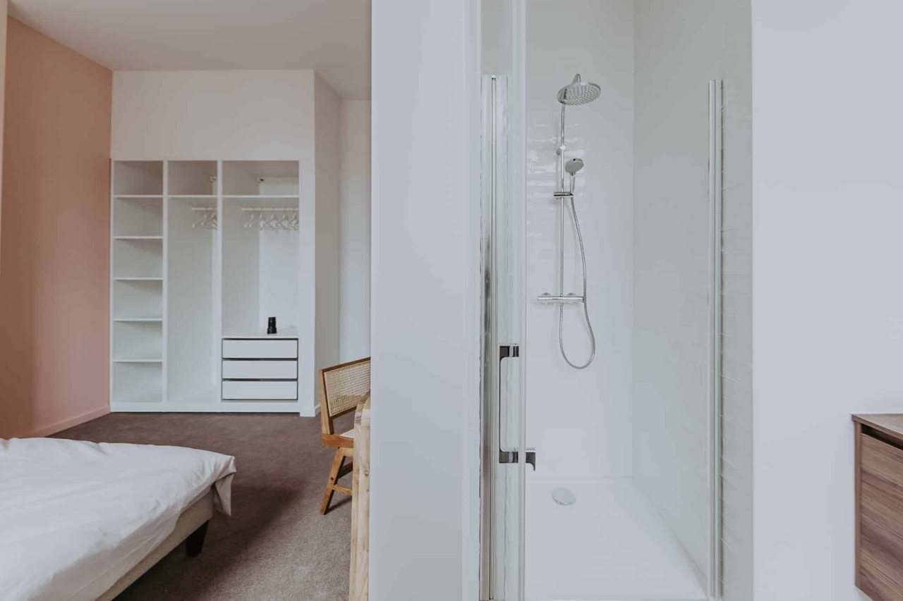 Une chambres spacieuse, équipées et cosy pour une location courte ou moyenne durée. Toutes les chambres sont meublées avec goût, équipées d’un dressing, un bureau, un lit 140cm, une salle de douche, des meubles de rangement et une connexion wifi.