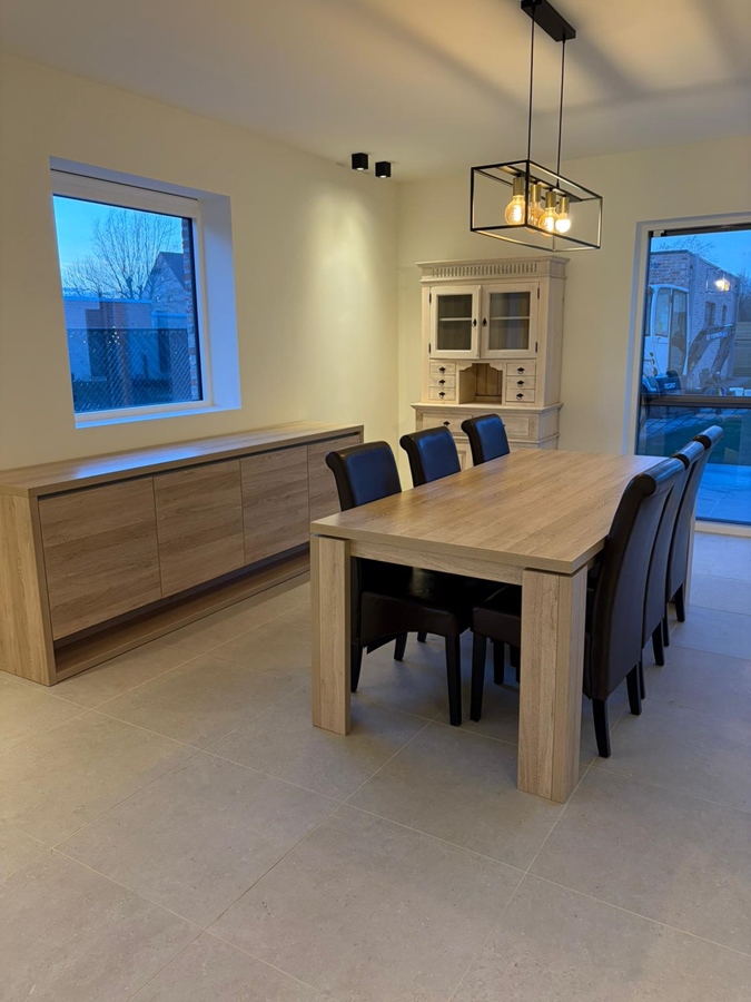 Cuisine et séjour spacieux, débarras et pièce de rangement supplémentaire. Beau jardin avec terrasse. Garage indépendant.