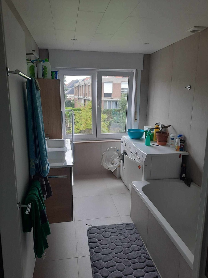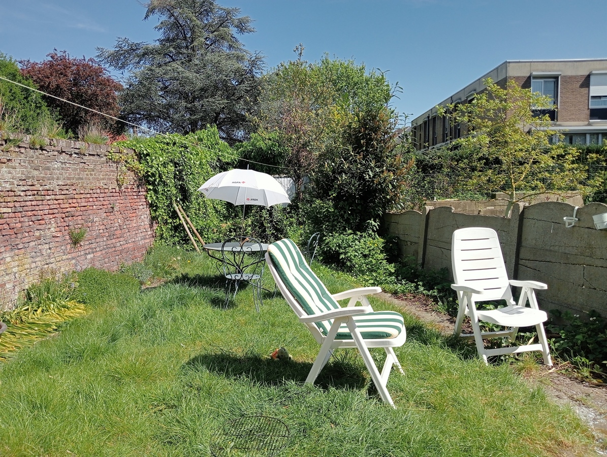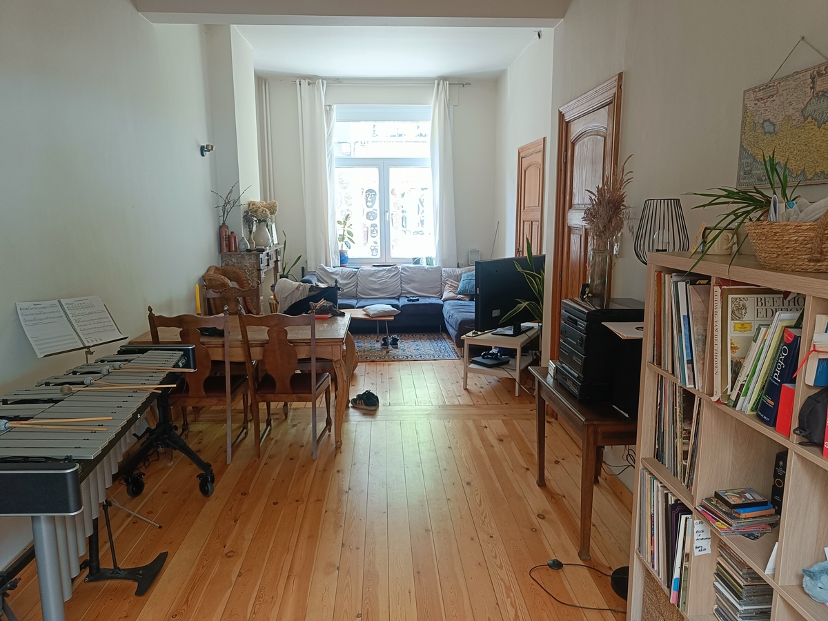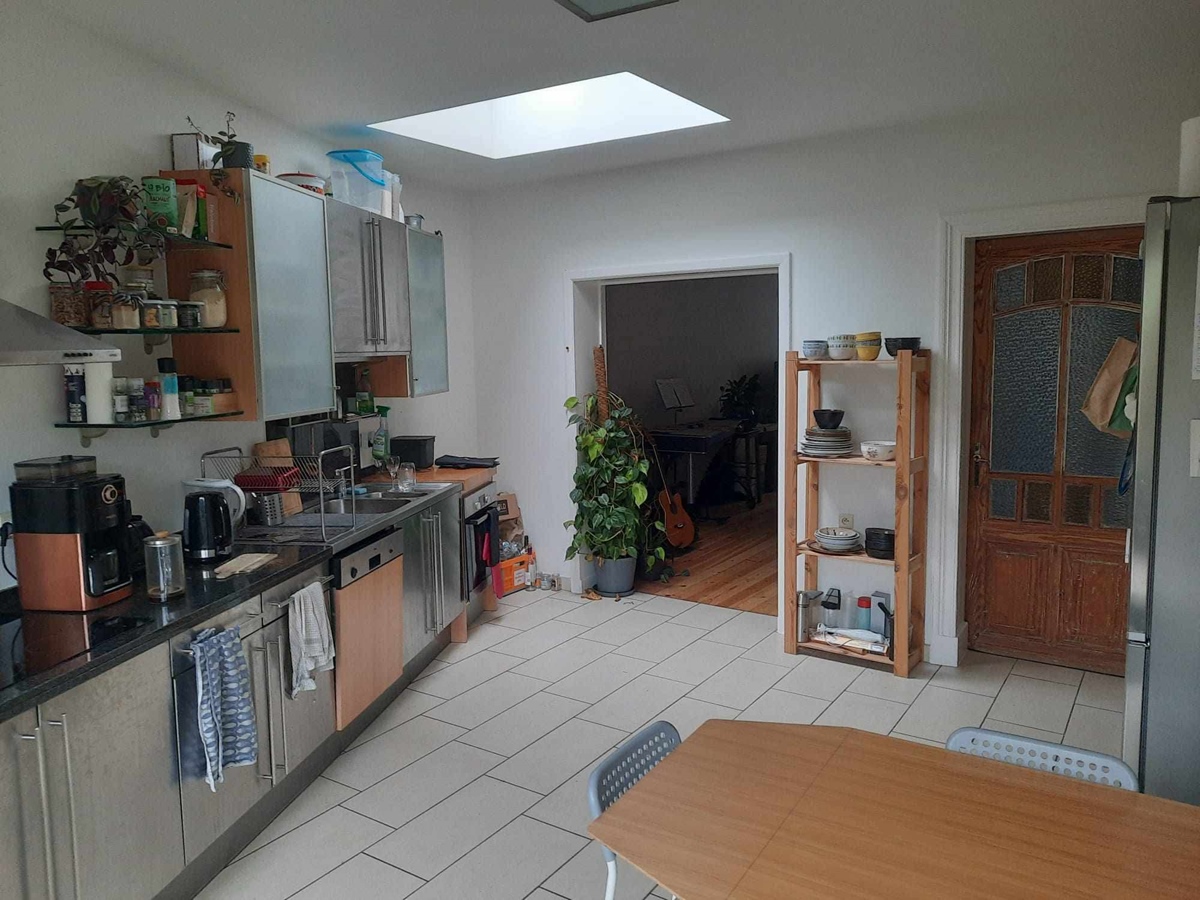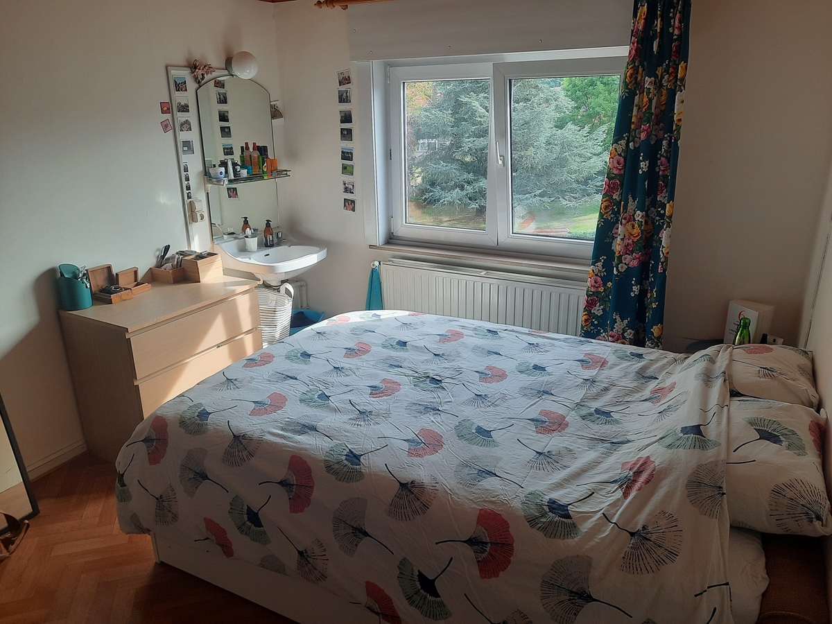 Au rez-de-chaussée, vous trouverez un grand salon commun et une cuisine baignée de lumière. Nous partageons également une salle de bain, deux toilettes, une douche supplémentaire, une cave et un grenier isolé. Un joli petit jardin vous attend, où vous pourrez planter des fraises ou autres gourmandises (malheureusement, les limaces nous devancent souvent et nous privent de la récolte). Notre maison est située dans un quartier résidentiel, à 10 minutes à pied de la gare de Louvain, à proximité de parcs, de commerces, d'un marché le mercredi, d'un centre sportif et du centre commercial Hal5.