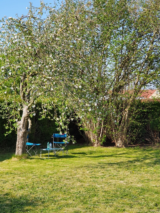 De privé slaapkamer is gerenoveerd heeft voldoende ruimte voor een kleerkast, dubbel bed, bureau en heeft zicht op.de tuin.
