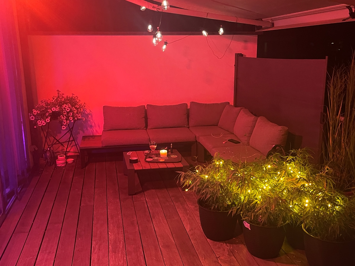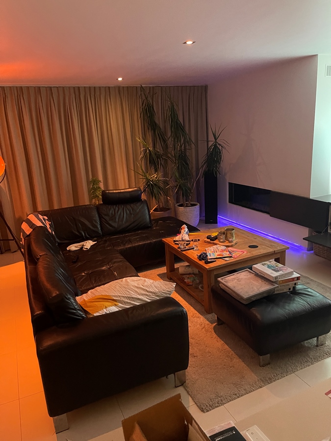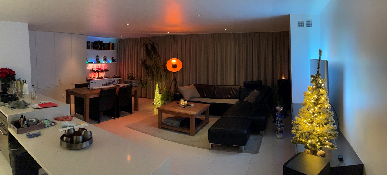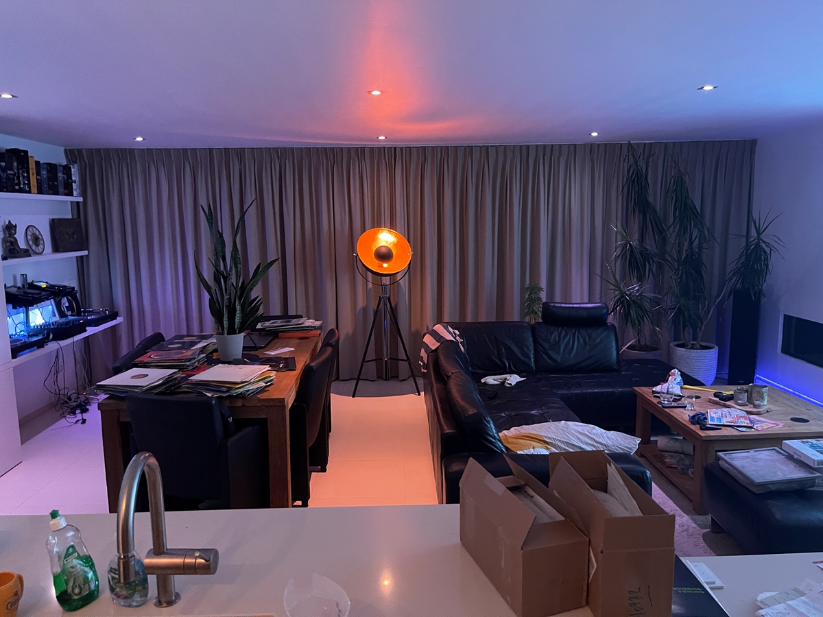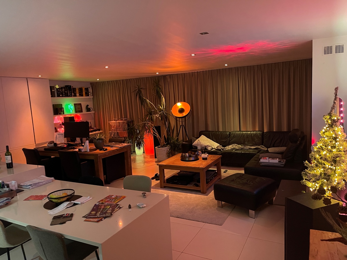 Spacieux appartement de luxe (125m2) avec grand salon avec cheminée à gaz et chauffage au sol et cuisine ouverte et grande terrasse avec chauffage de terrasse et auvent