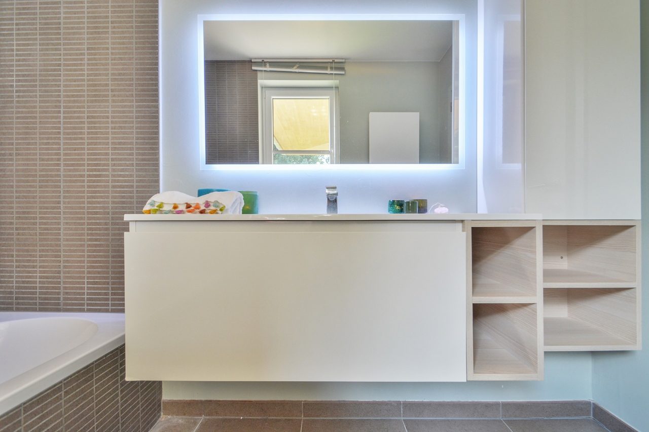 La chambre avec salle de bains privative est un véritable havre de paix où vous pourrez vous ressourcer instantanément. Spacieuse, elle offre un lit confortable, un dressing et une salle de bains qui garantit calme et intimité. Idéale pour commencer la journée en toute sérénité ou se détendre complètement en soirée.