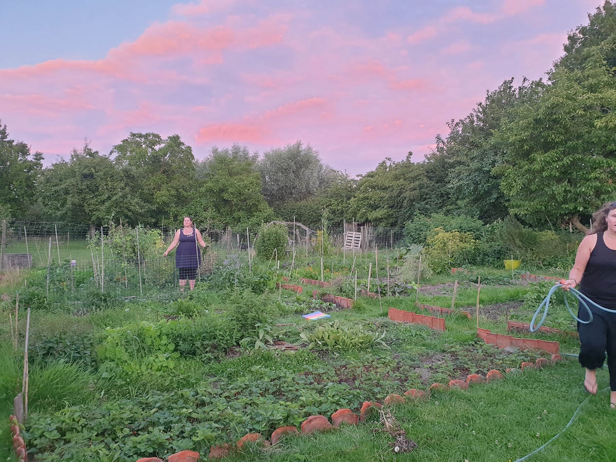 La communauté est composée de dix passionnés âgés de 3 à 55 ans désireux de créer ensemble un lieu où l'on prend soin de soi, des autres et de ce qui nous entoure.