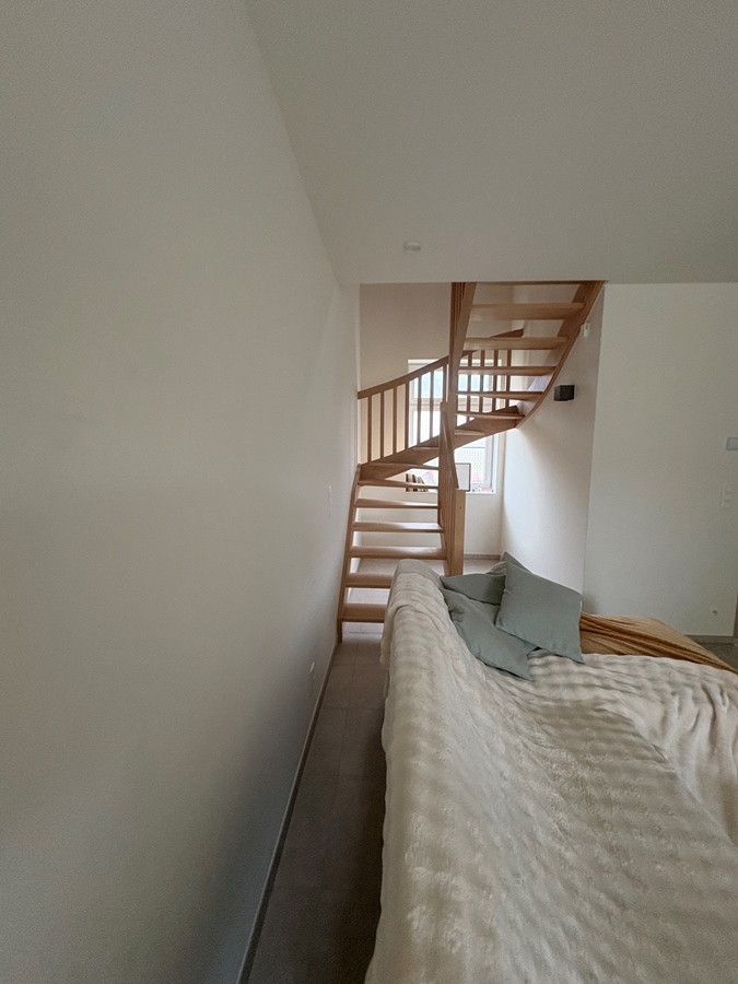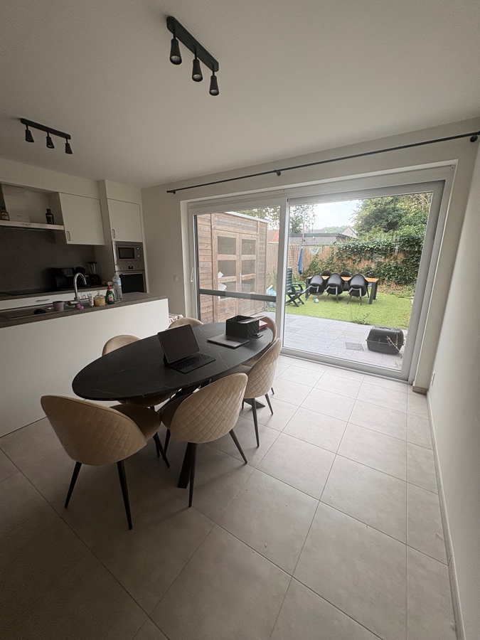 Bienvenue dans cette élégante maison neuve, située dans l'un des quartiers les plus prisés de Bruges. De construction récente, elle allie des finitions modernes à un confort optimal pour ceux qui recherchent une colocation de qualité dans un cadre calme et central. La maison dispose de quatre pièces. Deux d'entre elles sont spacieuses. Une pièce plus petite est également parfaitement conçue pour un espace nuit compact. La quatrième pièce a été aménagée en bureau entièrement équipé, idéal pour ceux qui travaillent régulièrement à domicile ou qui recherchent un espace de travail calme. Le séjour est spacieux et ouvert, avec une cuisine attenante entièrement équipée offrant tout le nécessaire pour cuisiner et dîner confortablement ensemble. La salle de bain est propre et fonctionnelle. À l'arrière, vous trouverez un joli jardin avec gazon synthétique facile d'entretien, idéal pour se détendre en plein air. Un abri de jardin est également à disposition, idéal pour ranger vélos et autres équipements. Cette maison est idéale pour les jeunes actifs ou les résidents internationaux qui apprécient un espace de vie de qualité et intime, tout en appréciant les avantages de la colocation. Grâce à sa situation centrale, vous vivez à distance de marche de tout ce que Bruges a à offrir, tout en profitant du calme et du confort dans une maison moderne.