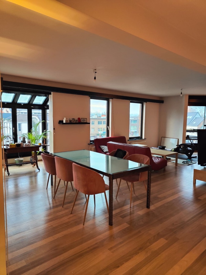 Bienvenue dans ce spacieux appartement de 170 mètres carrés, situé au deuxième étage avec une belle vue sur le marché Ternat. En entrant, vous êtes accueilli par un hall d'entrée lumineux avec un débarras pratique et des toilettes séparées.