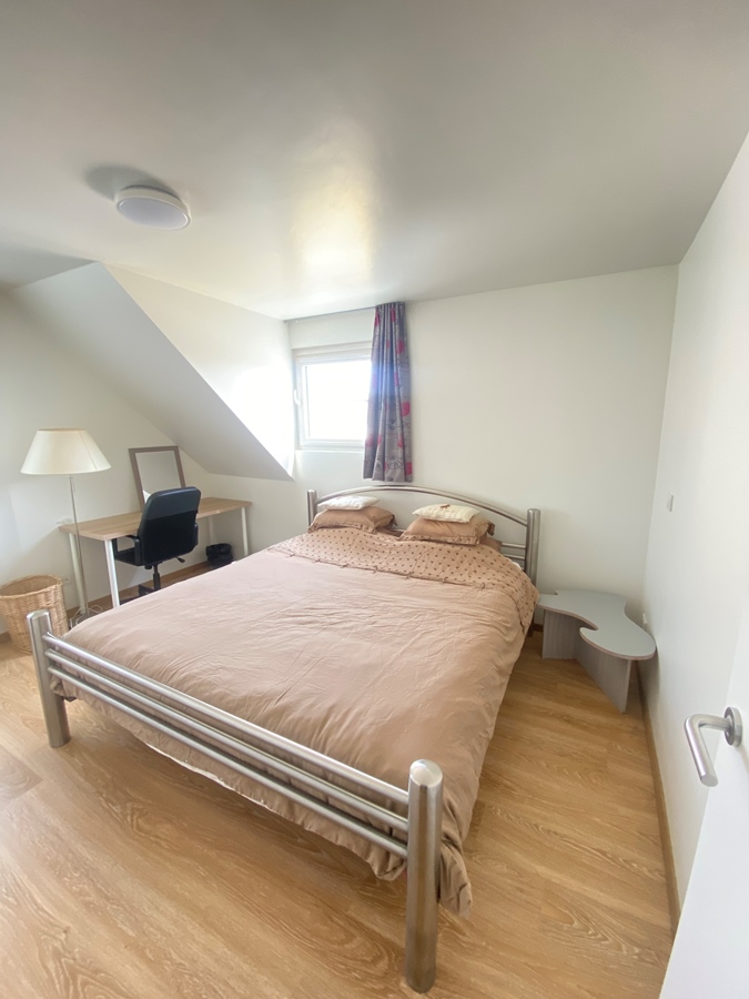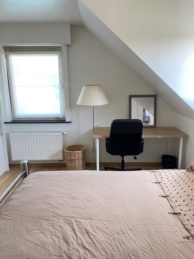 Comfortable private space with all necessary amenities The bedroom is completely private and offers everything you need for a peaceful stay. The space is equipped with a comfortable double bed, a desk to work or study undisturbed, and a built-in wardrobe with sufficient storage space. This is your personal place in the house where you can completely retreat and enjoy peace and privacy.