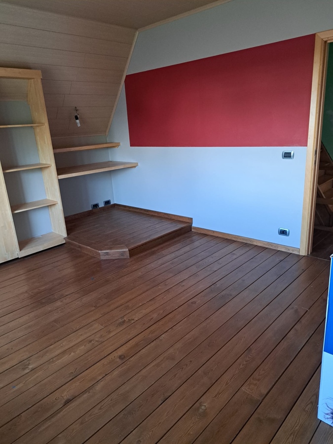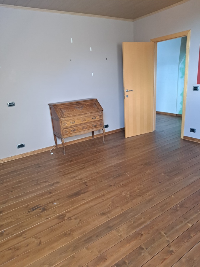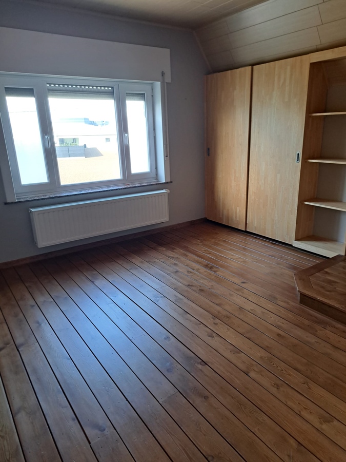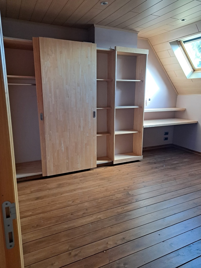 Une chambre spacieuse avec placard intégré et bureau.
