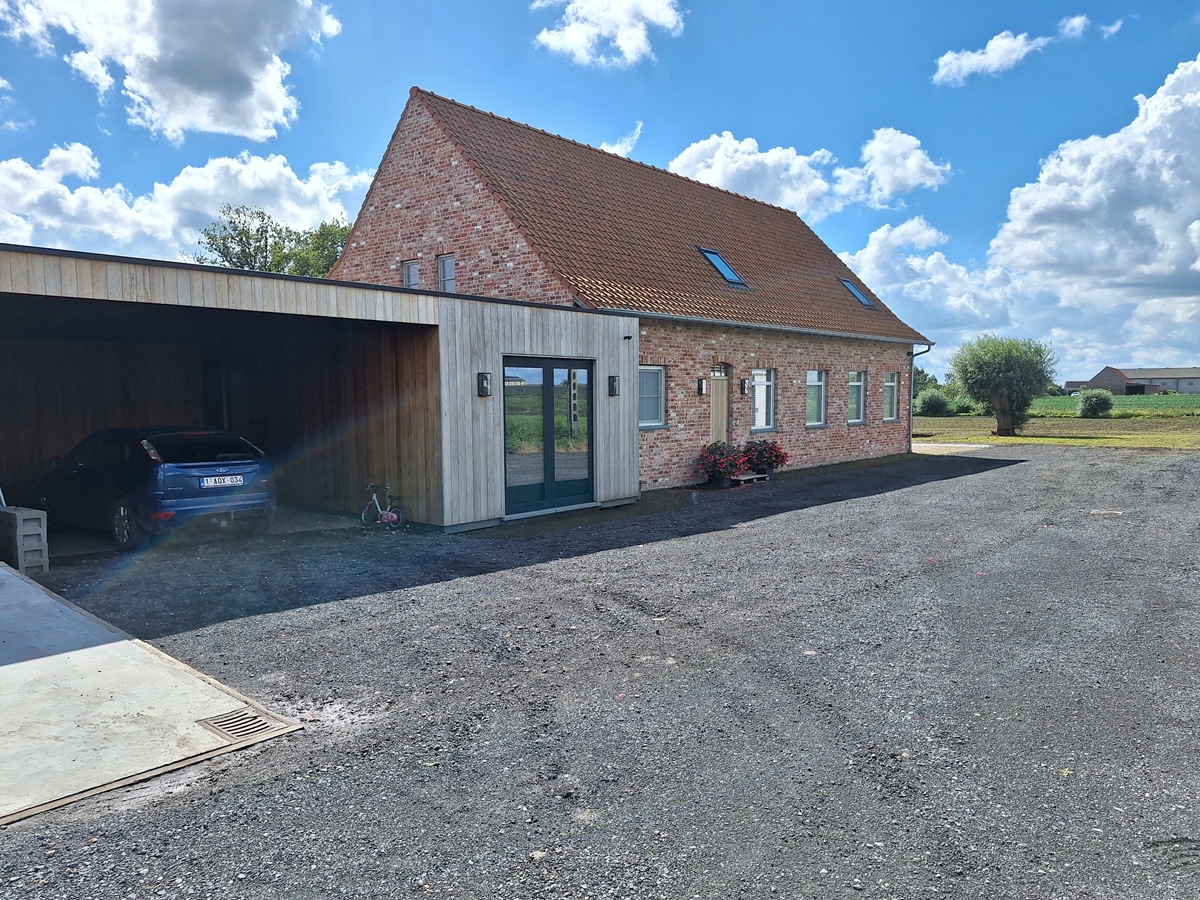 Cette maison individuelle est située en pleine campagne. L'intérieur a été entièrement rénové, offrant une ambiance à la fois moderne et champêtre. La cuisine est partagée et la maison dispose de deux salles de bains. Un grand parking est à votre disposition, ainsi qu'une vue sur les champs.