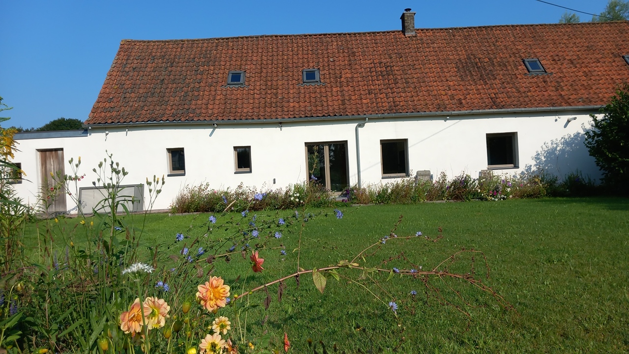een oude landelijke gerenoveerde hoeve op een groen domein van 5000m², op 1 km van het station van Maria Aalter, verscholen achter een geluidsberm langs de autosnelweg die begraasd wordt door bergschaapjes en kippen die bij de woning horen. er is ruimte voor een grote moestuin en neerhofdieren.