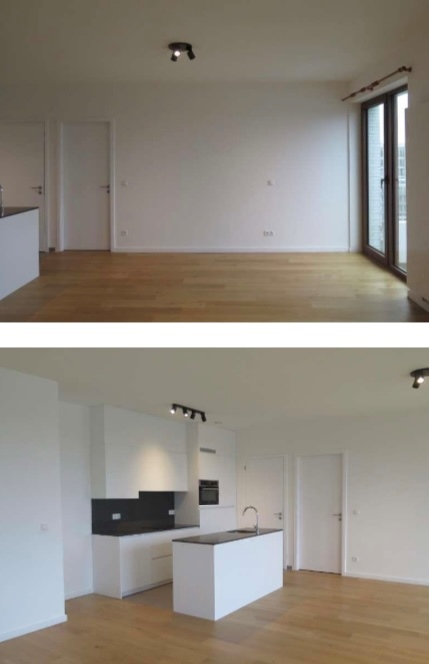 Met gordijnen, meerdere stopcontacten en 2 schakelaars.