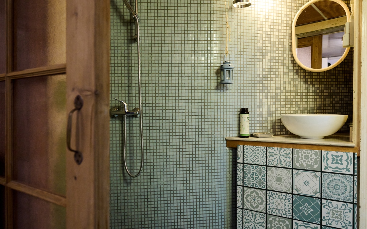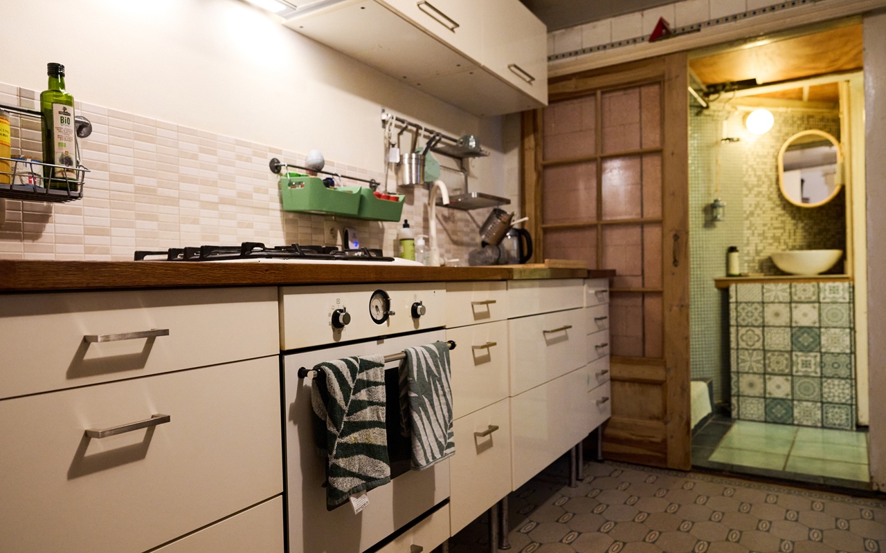 Het privéstudio-appartement op de begane grond bestaat uit twee woonkamers, waaronder een slaaphoek, een patio met eetkamer die uitkomt op een goed uitgeruste keuken, een kleine doucheruimte met apart toilet en een kleine binnenplaats. Het appartement is volledig gemeubileerd.