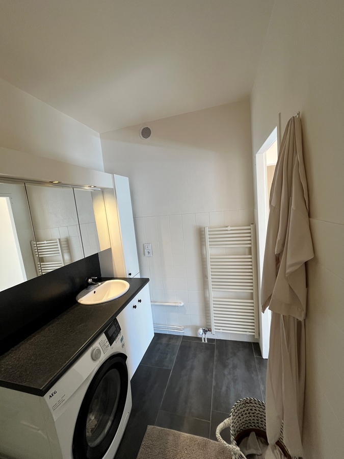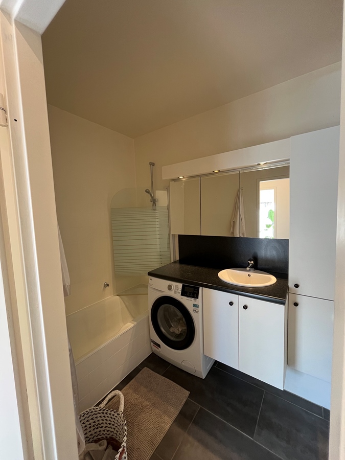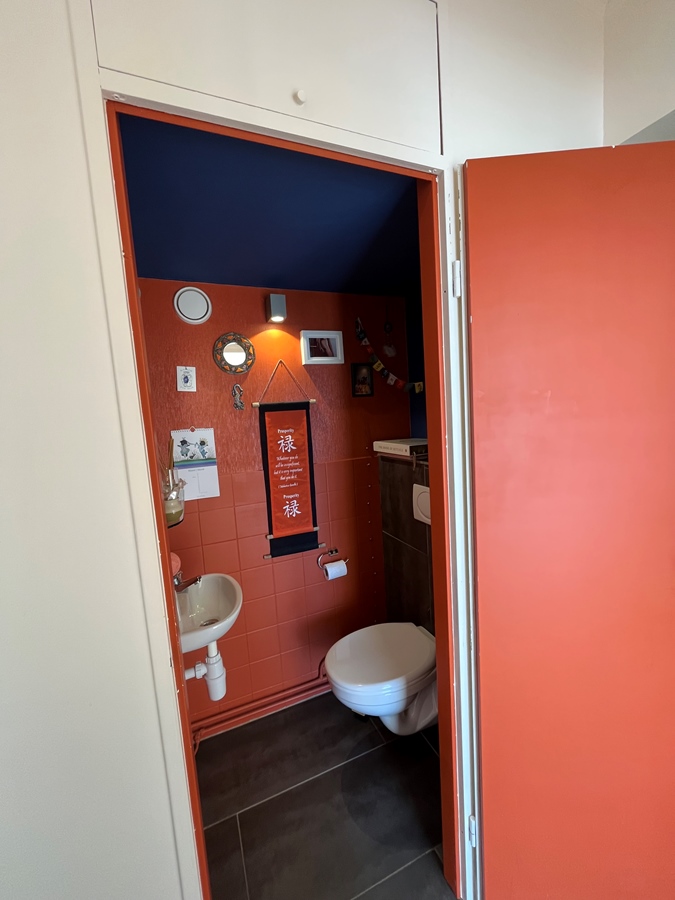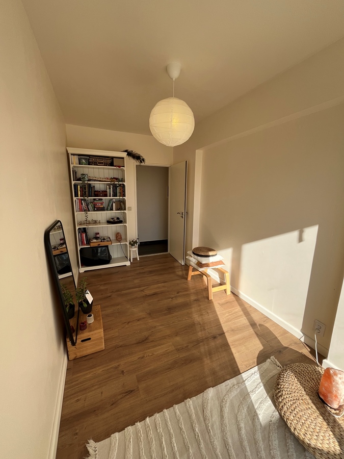 Het “klein kamertje” heeft altijd als yoga kamer dienst gedaan. Maar is een prima kamer voor een enkel bed en iets wat bescheiden te leven. Alle kasten in badkamer, vestiaire etc delen we, je kan natuurlijk je persoonlijke bezittingen op een kast in de kamer hebben.