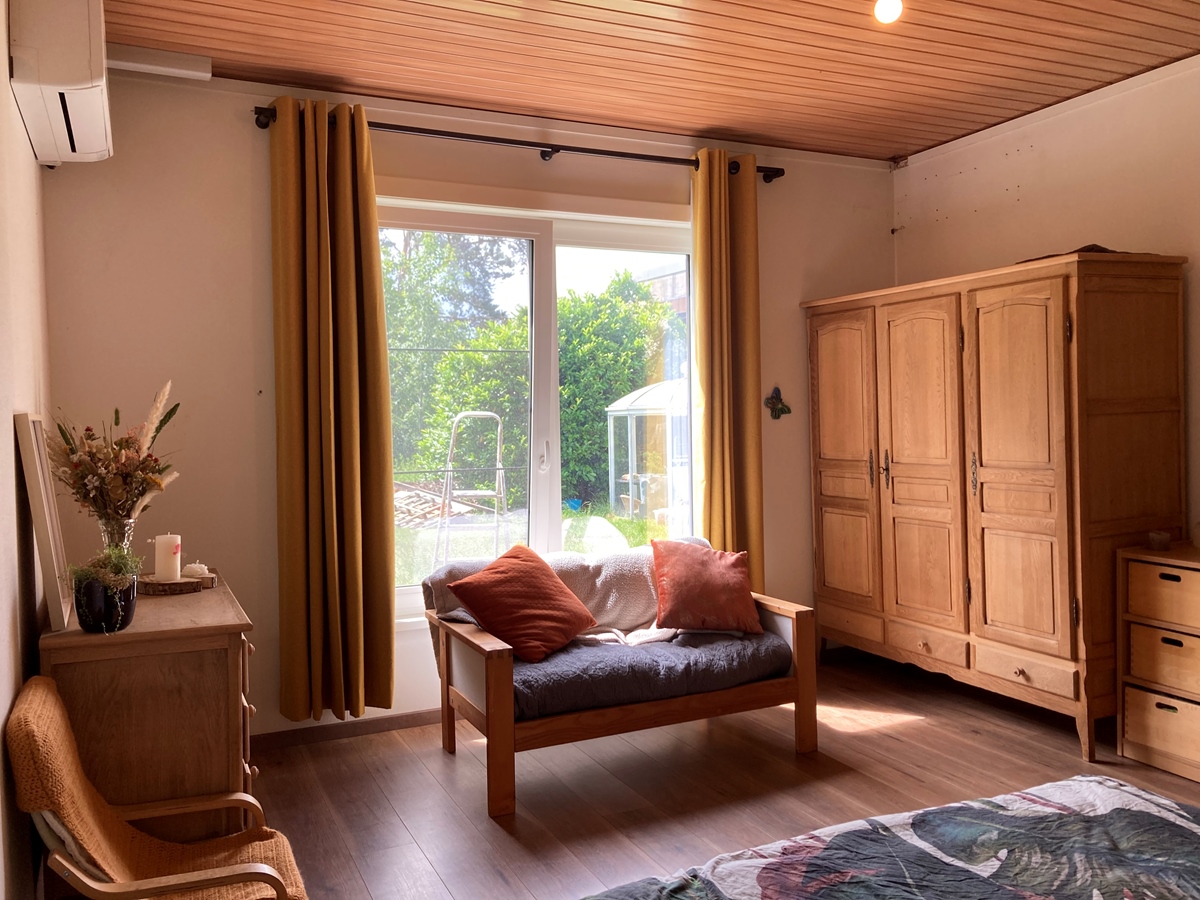 De woning heeft een grote living aan straatkant met een aangrenzende keuken. Een apart toilet. Badkamer met bad, douche, dubbele lavabo en voldoende opslagruimte voor 2. In de garage is er plaats voor fietsen en hier is ook het washuis met wasmachine. Ik heb een hele grote tuin waar ik stukje voor stukje leuke projecten ben aan het bouwen. Van moestuin tot bloementuin.