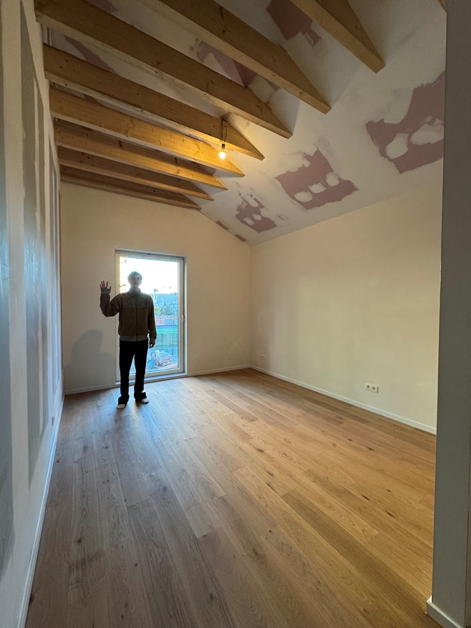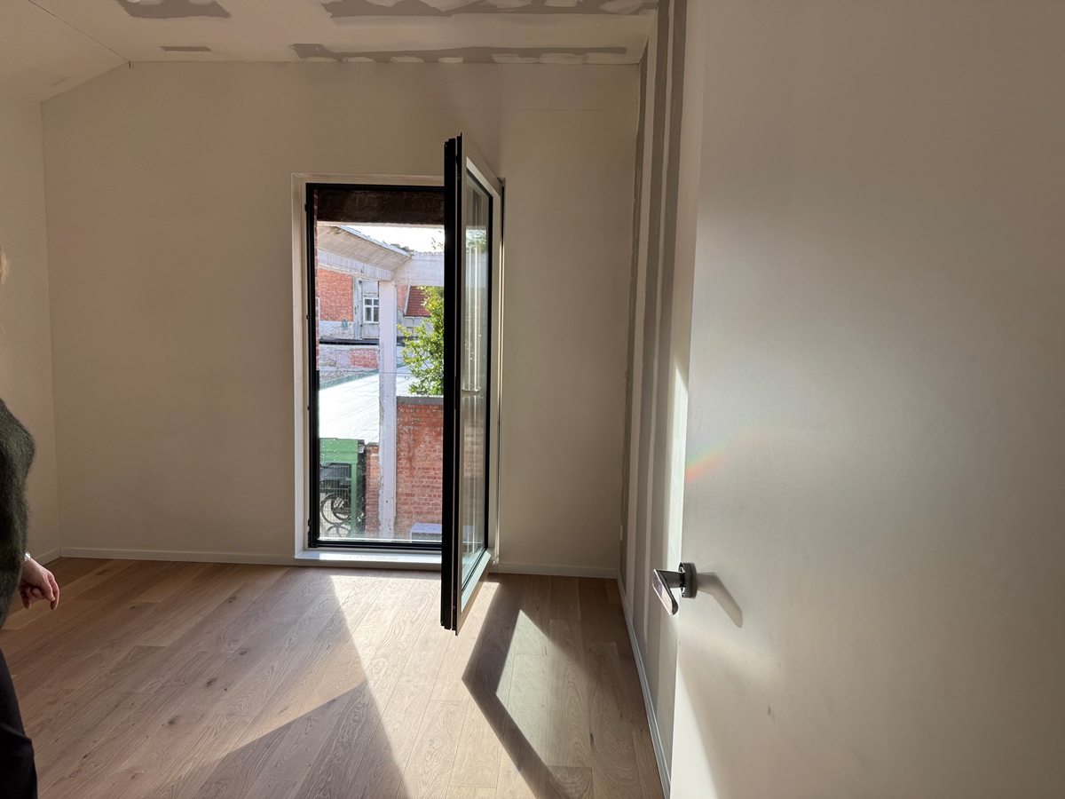 De privéruimte bestaat uit een slaapkamer met groot raam en veel natuurlijk licht, aangevuld met een eigen badkamer met douche. De kamer biedt rust, comfort en voldoende privacy binnen een kwalitatieve gedeelde woonomgeving.