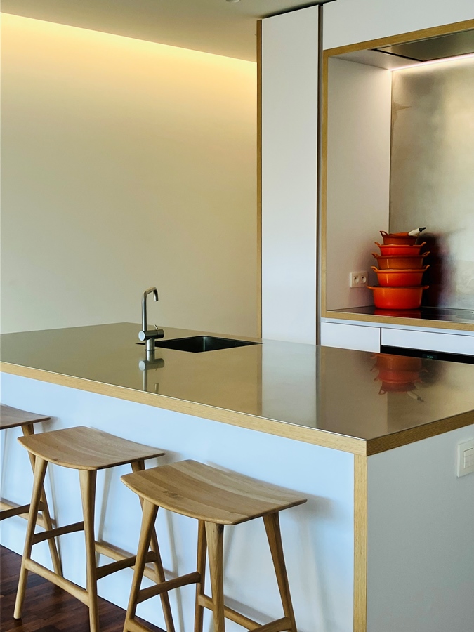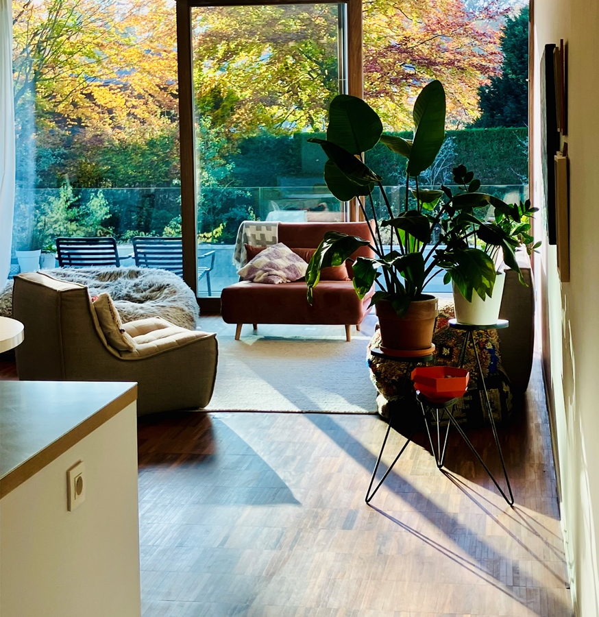 Het appartement is een deel van een co-housing (light). Iedere bewoner (we zijn met 12) heeft zijn eigen appartement (+100m2) en we delen een polyvalente ruimte, wasruimte, tuin en zwemvijver.