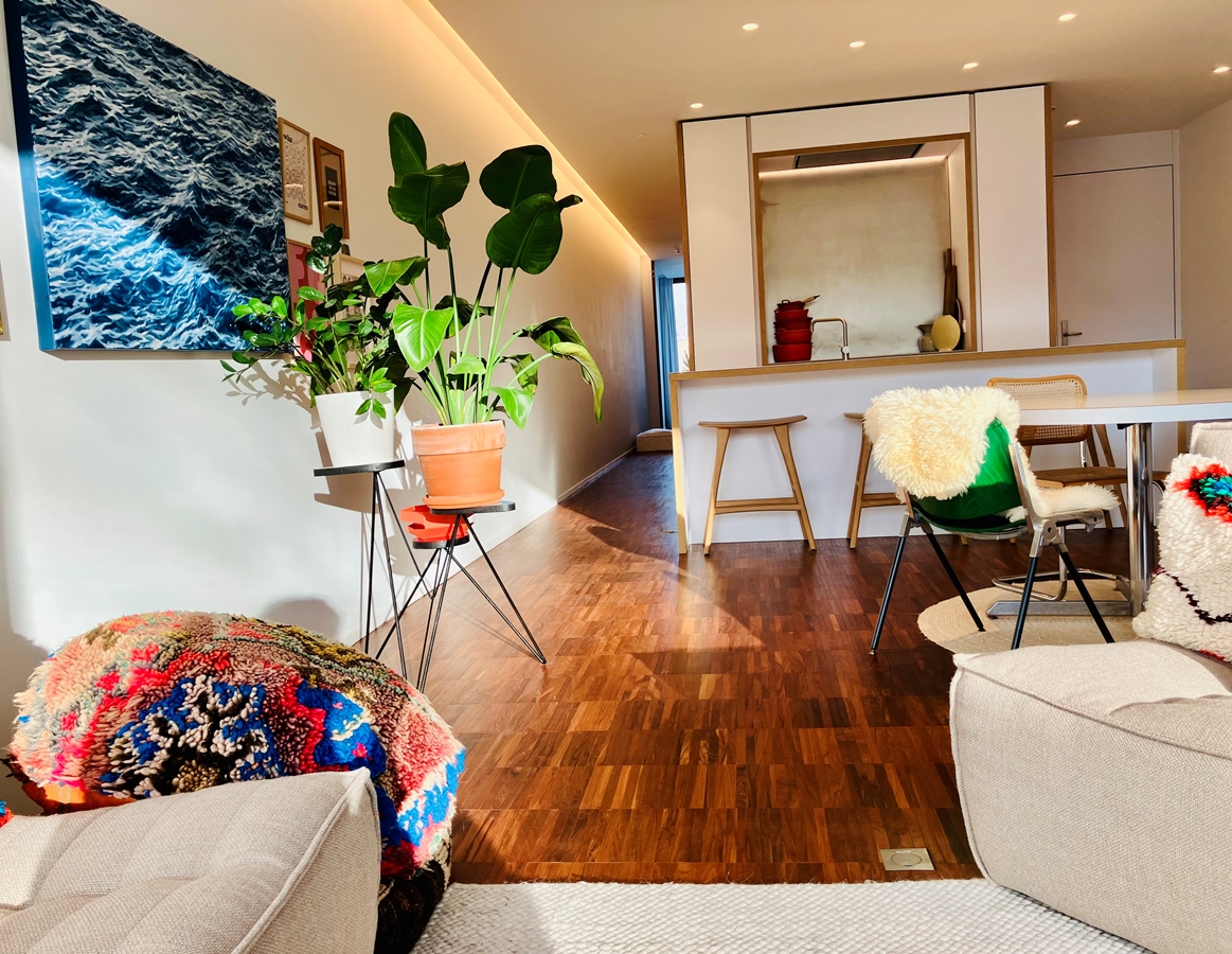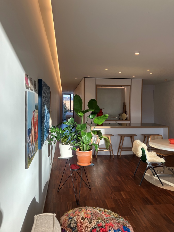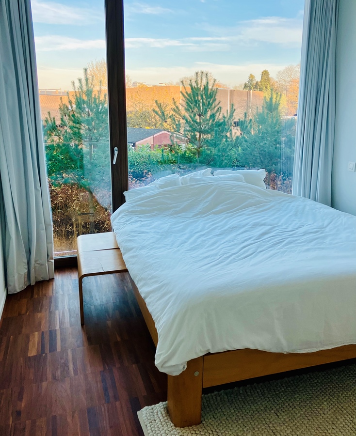Modern, licht appartement. 1 kleine en 1 grote slaapkamer, dressing, open keuken met vaatwasser en oven, badkamer met inloopdouche, zonnig terras, Bewoond sinds april 2024. Bemeubeld. (te delen met mij -ik ben er gemiddeld 10 dagen per maand en ik ben leuk!)