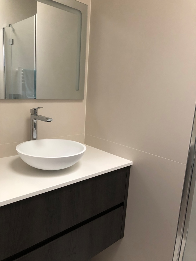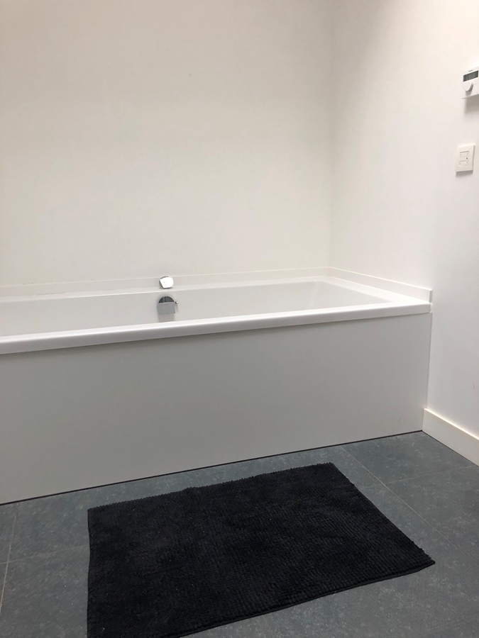 Badkamer: ruime badkamer met inloopdouche, bad, dubbele wastafel en voldoende opbergruimte