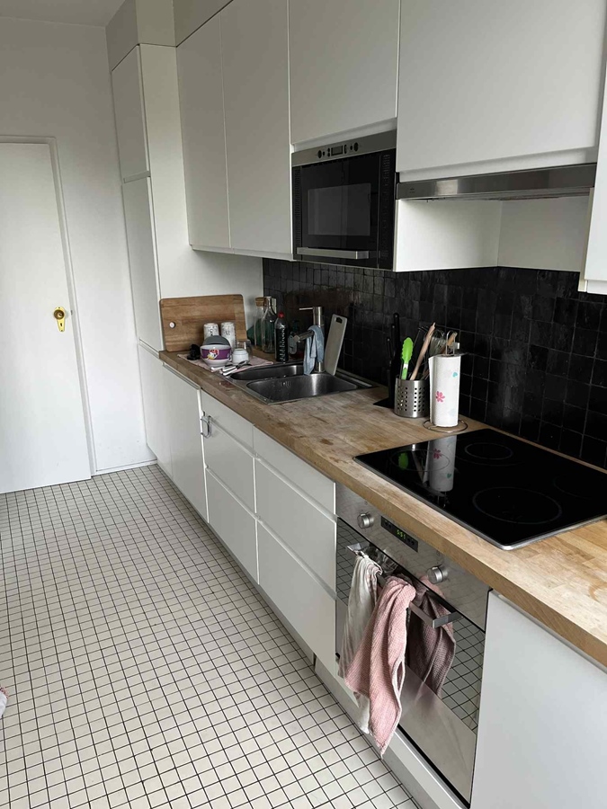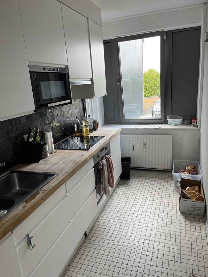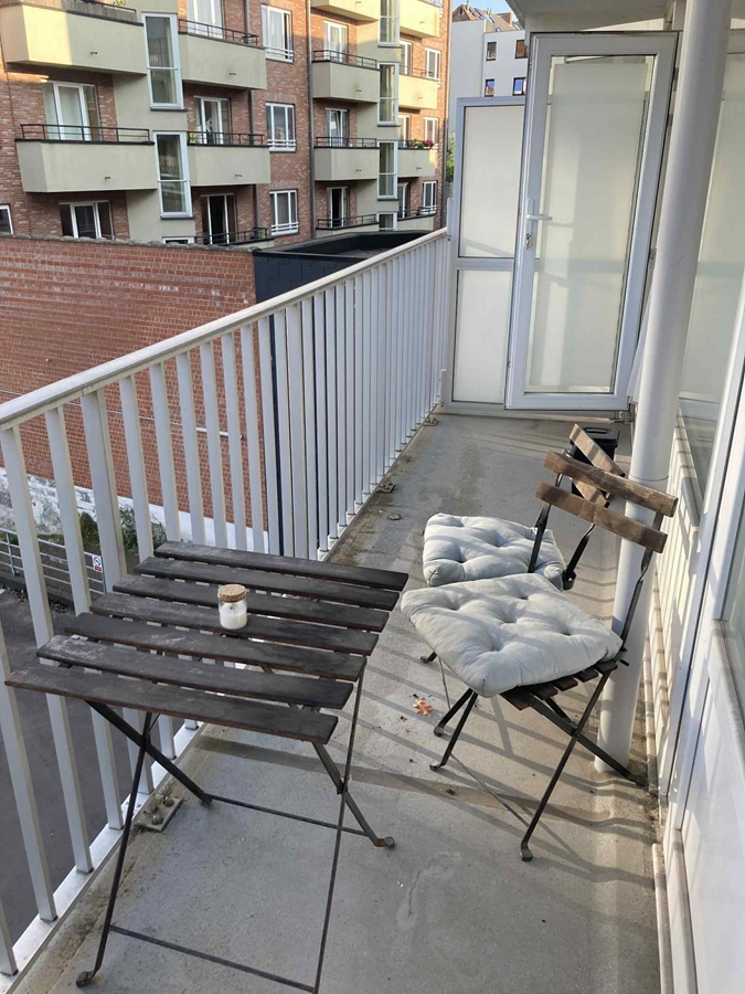 Het appartement heeft naast twee privéslaapkamers een grote gemeenschappelijke leefrumte met een zetel, salontafel en eettafel. De volledig uitgeruste keuken met oven, microgolfoven, koelkast, diepvries én vaatwasser sluit aan op de leefruimte. Zowel in de keuken, als in de leefruimte is er door de grote ramen veel lichtinval (inclusief mooie zonsondergangen in de schaduw van de Bijlokesite!). Daarnaast is er een kleine badkamer met inloopdouche en toilet. Ten slotte is er wasmachine en kan je makkelijk veel zaken opbergen in een grote kast in de leefruimte.