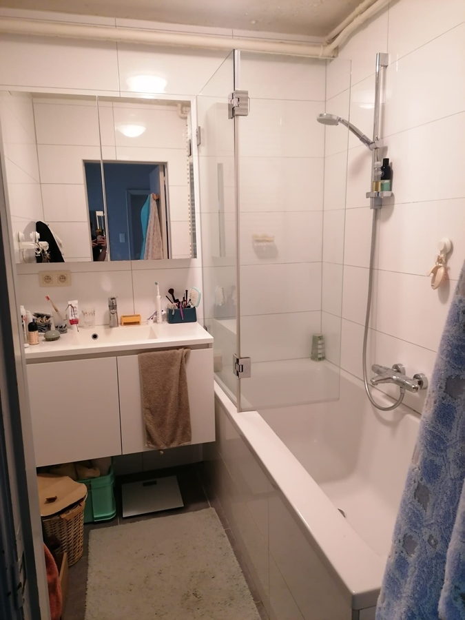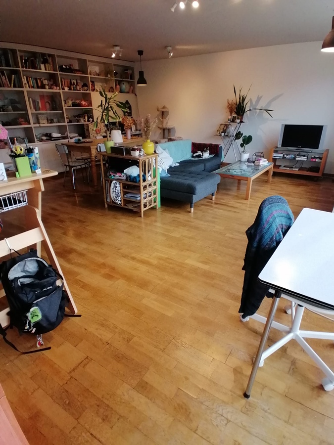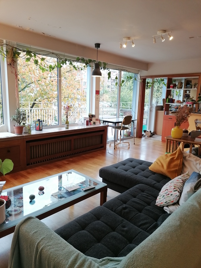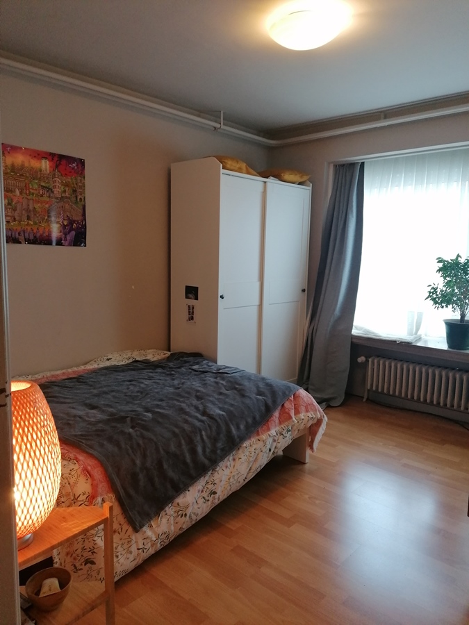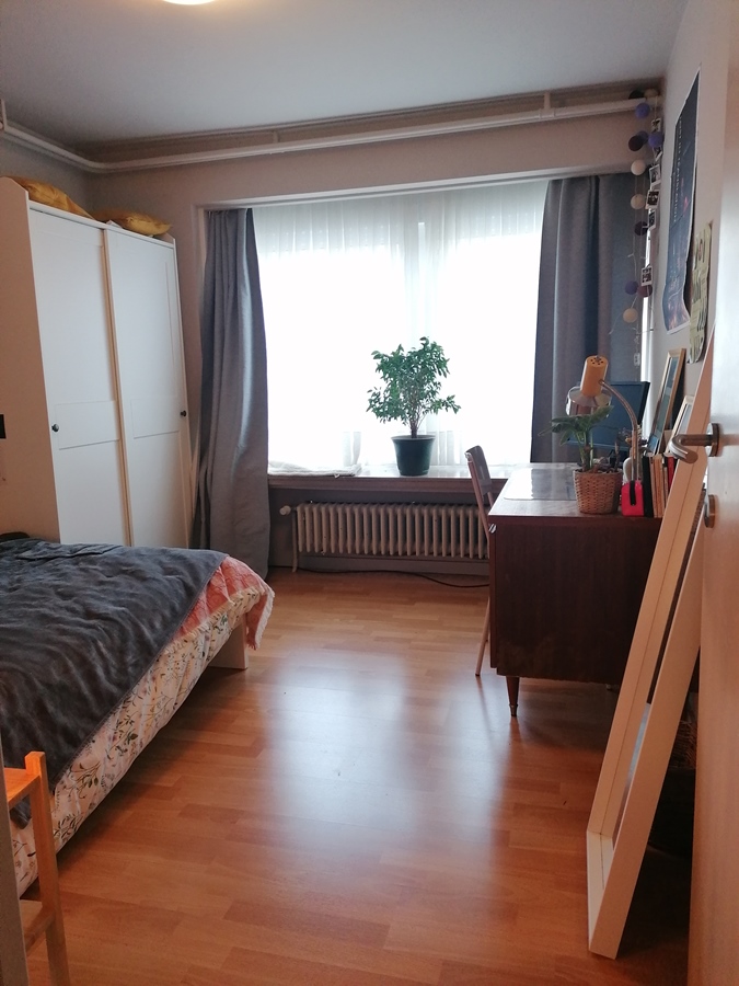 Onze thuis is een zonovergoten, volledig gemeubileerd appartement op de eerste verdieping met een groot terras dat uitkijkt op een tuin met grote bomen. We bevinden ons ten noorden van Gent Sint-Pieters, op ongeveer 10 minuten lopen van het treinstation. De huurprijs inclusief alle kosten (nutsvoorzieningen, verzekering, internet...), is ongeveer €625. De huurprijs stijgt jaarlijks met ongeveer €10-€ 20, afhankelijk van de indexering.