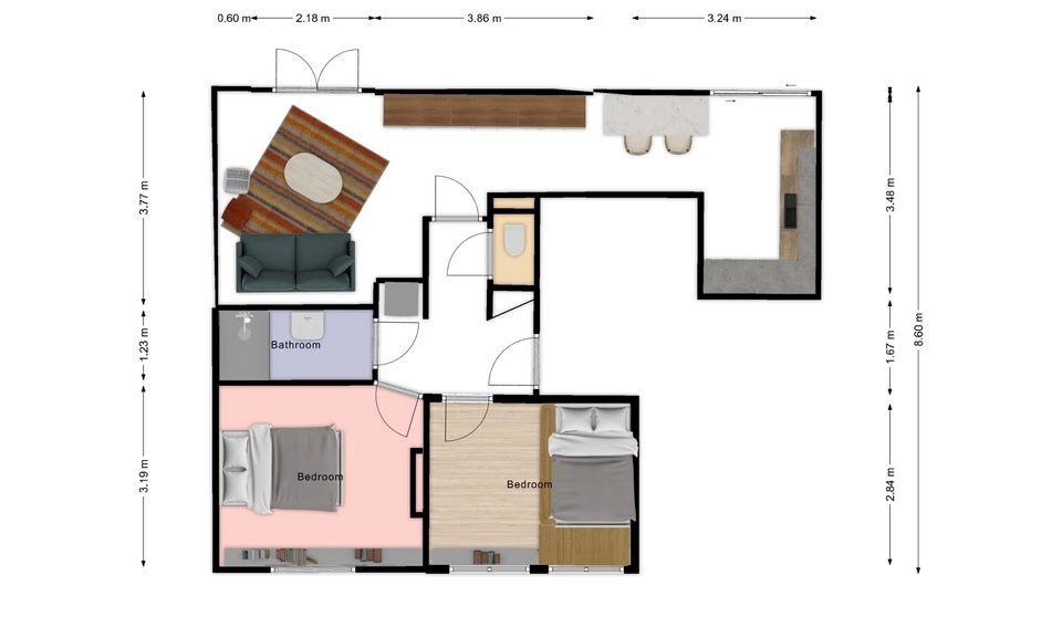 Votre chambre fait environ 10 mètres carrés. Si vous le souhaitez, votre chambre sera entièrement meublée avec un lit simple ou double, un bureau et un placard.