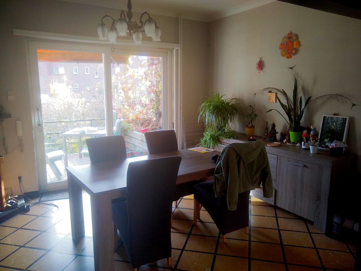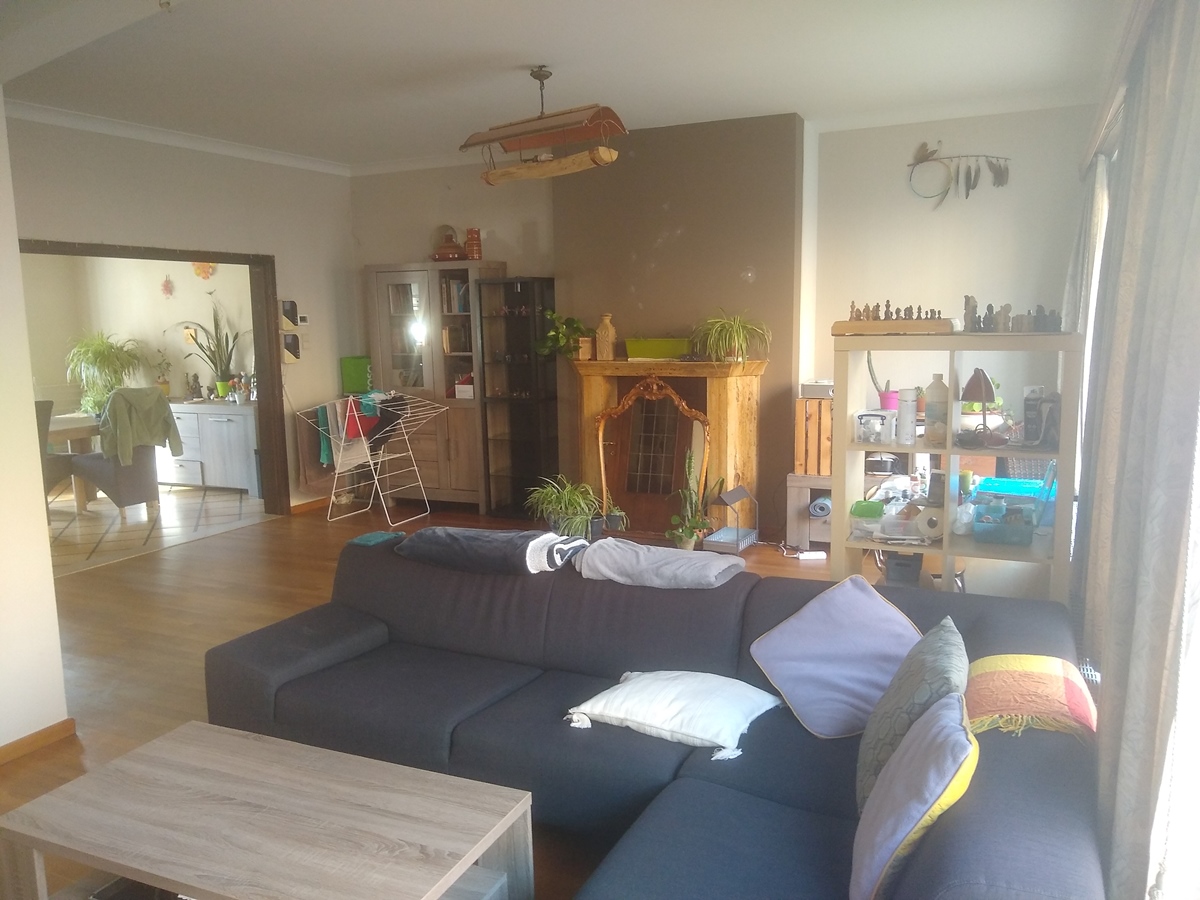 We beschikken over een grote gezellige living met eetkamer, keuken, toilet en terras. Op de bovenliggende verdieping is er een badkamer en 3 slaapkamers (waarvan er dus 1 vrij komt). Achter het huis ligt een grote privé-tuin met vijvertjes en een vijgenboom.