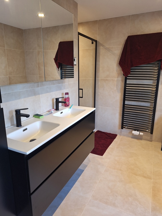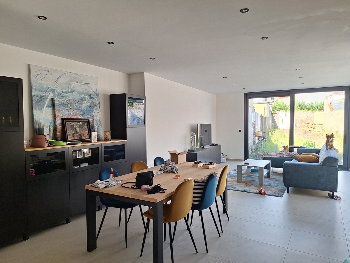 Volledig geïnstalleerde keuken met vaatwasmachine, grote koelkast en grote diepvries. Open eetplaats en leefruimte Badkamer met douche en bad op de eerste verdieping. Berging met wasmachine op de eerste verdieping.