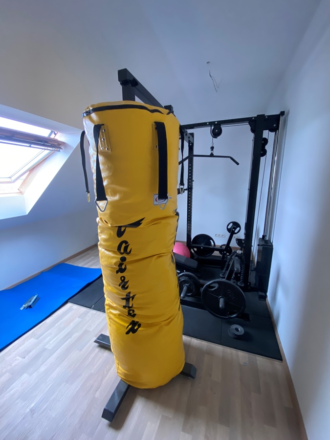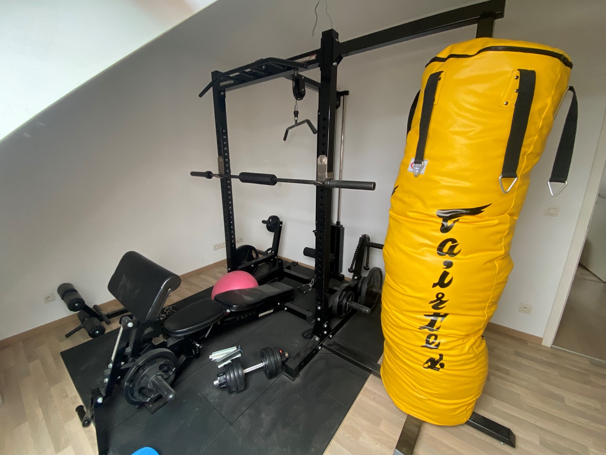 On the second floor there is another bedroom with private bathroom, and a fitness room with strength and cardio equipment.