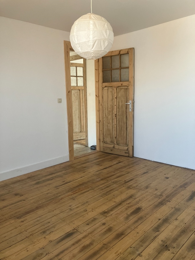 Authentieke kamer met houten vloer en een oppervlakte van 16 vierkante meter. De kamer bevindt zich aan de achterzijde (tuinkant) van de woning op de 2de verdieping.