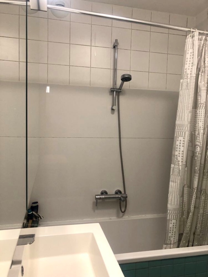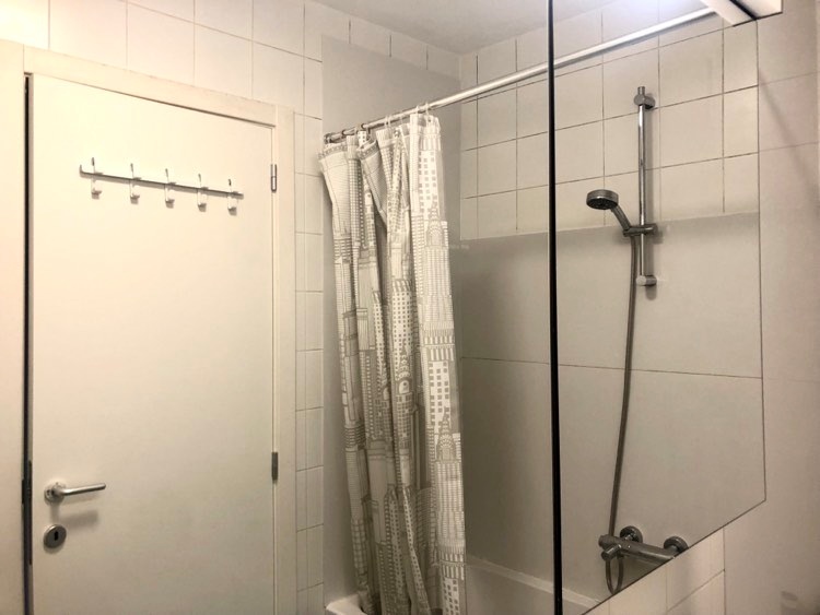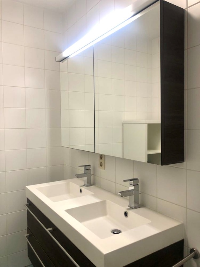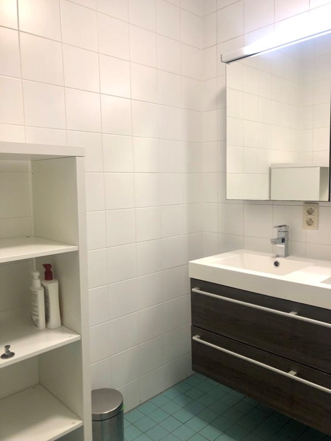 Naast de kamer bevindt zich de badkamer, gedeeld met 2 personen. Er is een badkuip en een douche en voldoende ruimte voor persoonlijke hygiënische spullen en handdoeken. Elke bewoner heeft een private lavabo. Op dezelfde verdieping is ook een toilet (gedeeld tussen 2 personen). Elke kamer wordt tweewekelijks gepoetst door onze vaste poetsvrouw. Zij doet wekelijks alle gemeenschappelijke delen + 2 kamers. De 2 andere kamers doet zij de week daarna.