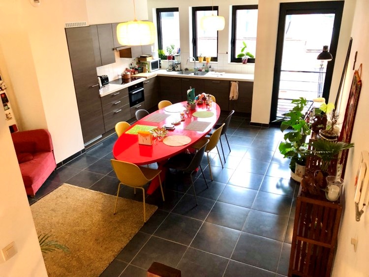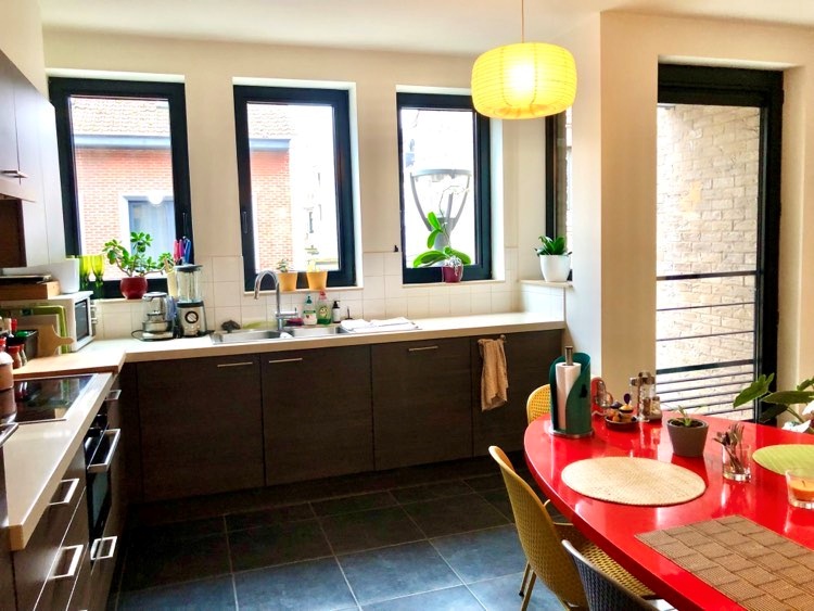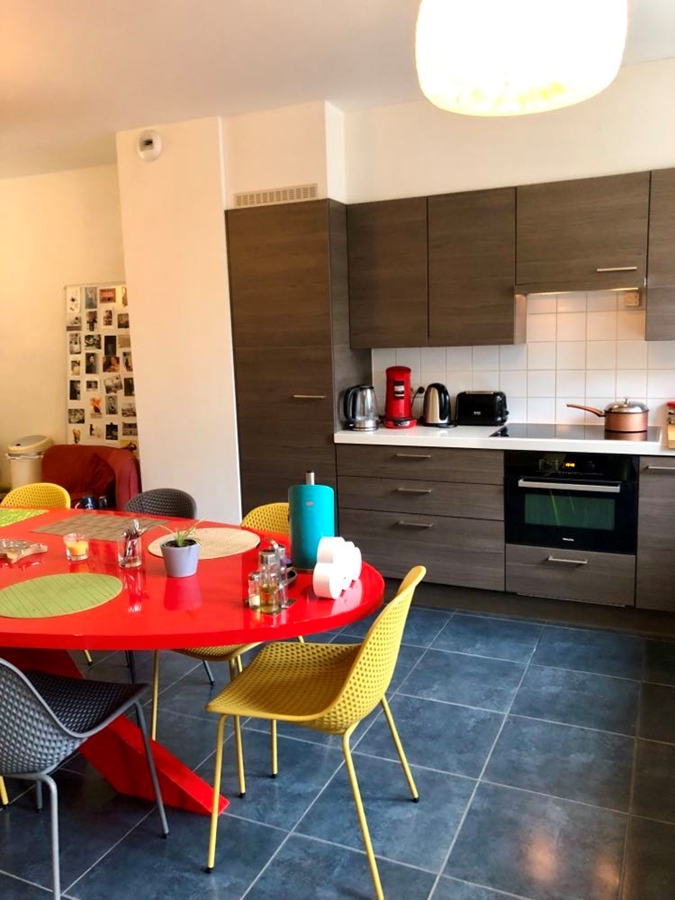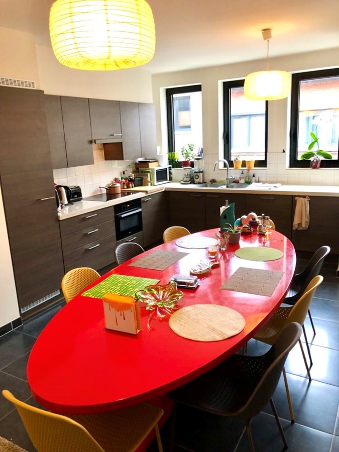 De kamer bevindt zich op de 2de verdieping in een huis van 250 m2, waar in totaal max. 4 personen wonen (er zijn 4 kamers in het huis, 3 toiletten en 2 badkamers). Momenteel zijn we met 3 NL-talige Belgen. De gedeelde keuken van 40 m2 is hyper-geëquipeerd. Er is een gedeelde tuin van 60 m2 (oostelijk georiënteerd) met stenen terras en een moderne, gerieflijke terrastafel. Er wordt gezorgd voor de vele planten en bloemen binnen en buiten (indien je groene vingers hebt, mag je altijd meehelpen ;-)). De gedeelde kelder meet 25 m2, daar staan een wasmachine, droogmachine, strijkplank, strijkijzer en verschillende droogrekken ter beschikking; men kan gerust een droogrek meenemen naar de kamer voor privacy. Er is ook voldoende stockageruimte in de kelder voor valiezen en dergelijke. Alle transport is op 150 m (trams en bussen, 2 metrostations zijn op 8 min wandelen of op 3 slechts minuten met de tram) en het centrum van Jette - met alle winkels - is op 250 m. Alle gemeenschappelijke delen - de keuken, de badkamers, toiletten, hall, trappen,... - worden wekelijks gepoetst.