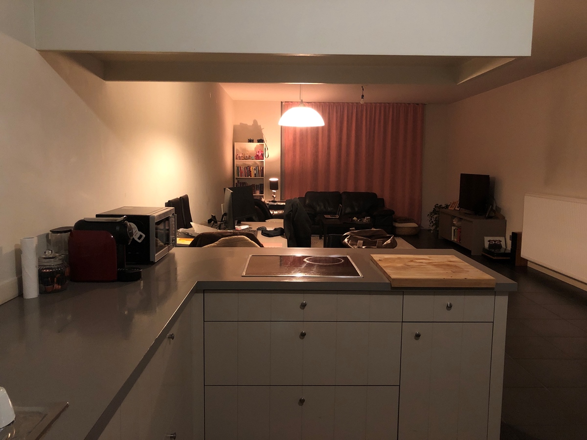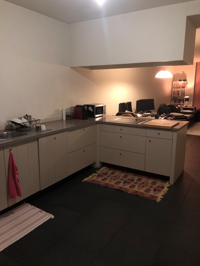 Gelijkvloers appartement met aparte inkom. Grote keuken en living.