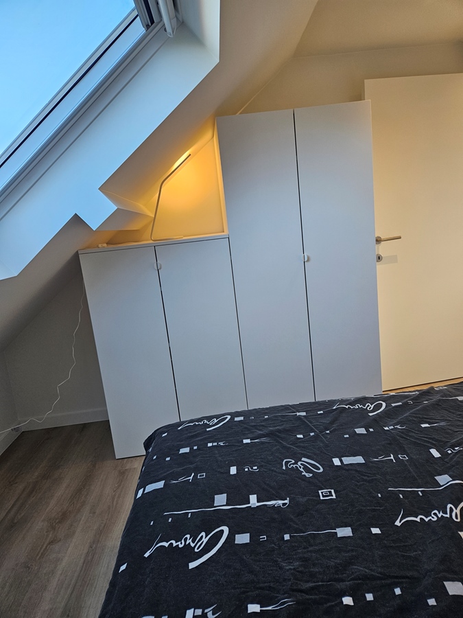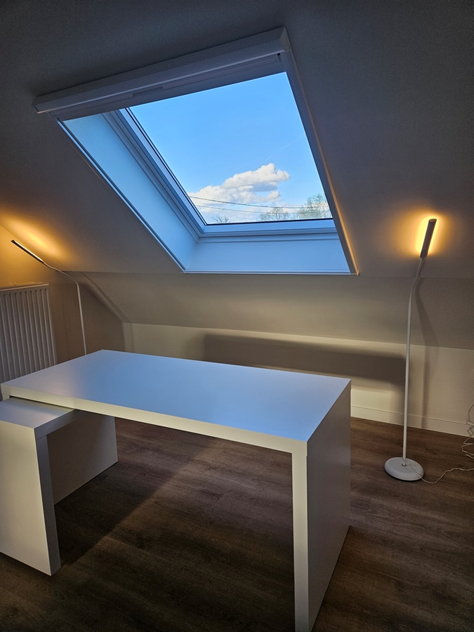 Er is veel ruimte en veel licht (5 grote veluxramen). Én het is hier stil.