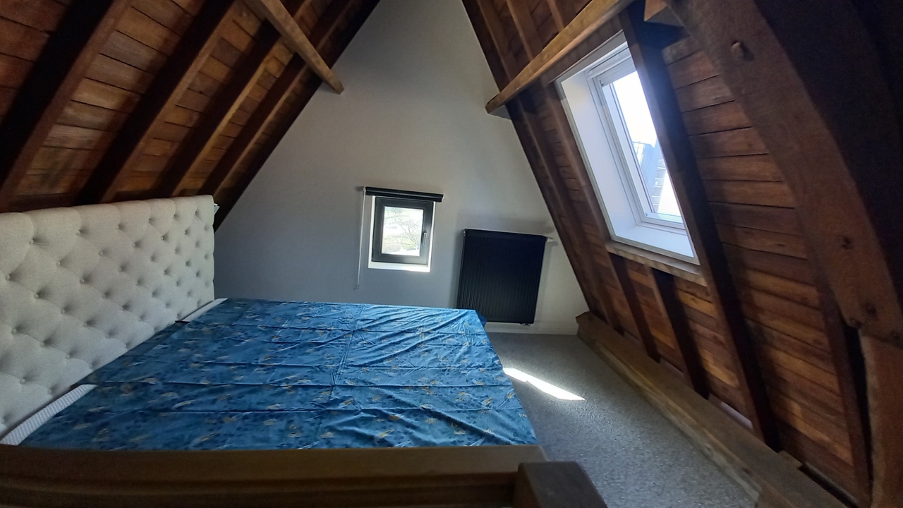 De kamer die vrij komt is een duplex kamer die een trap heeft naar de zolder waar je onder oude eiken balken een slaapkamer hebt.